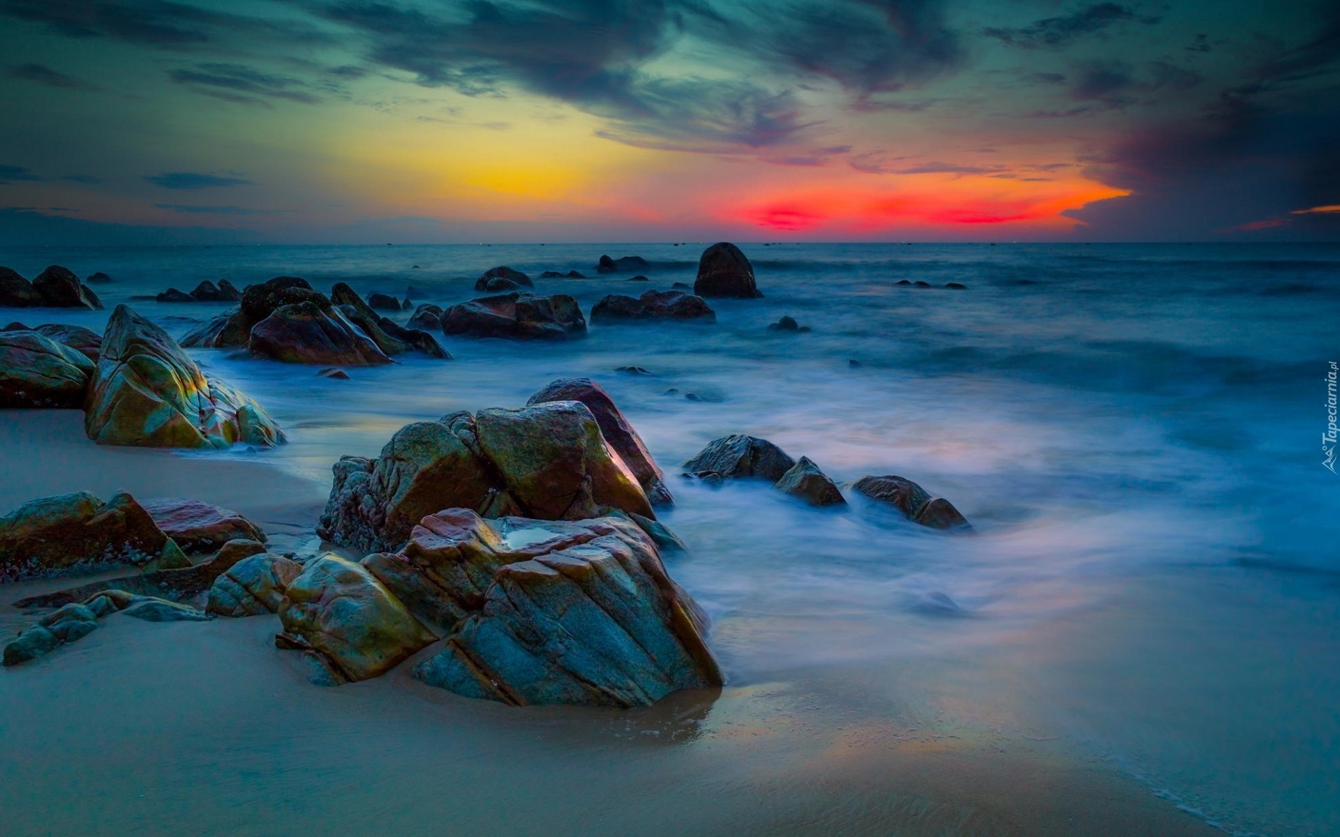 Edytor tapety: Morze, Skały, Chmury, Zachód, Słońca