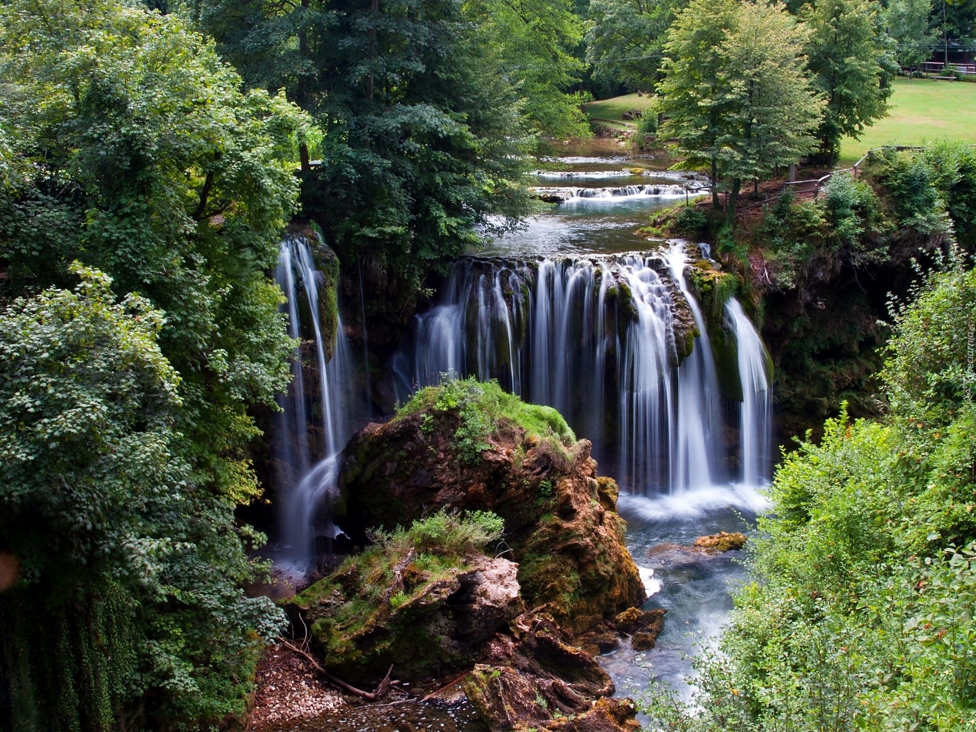 Edytor tapety: Las, Rzeka, Wodospad, Skały