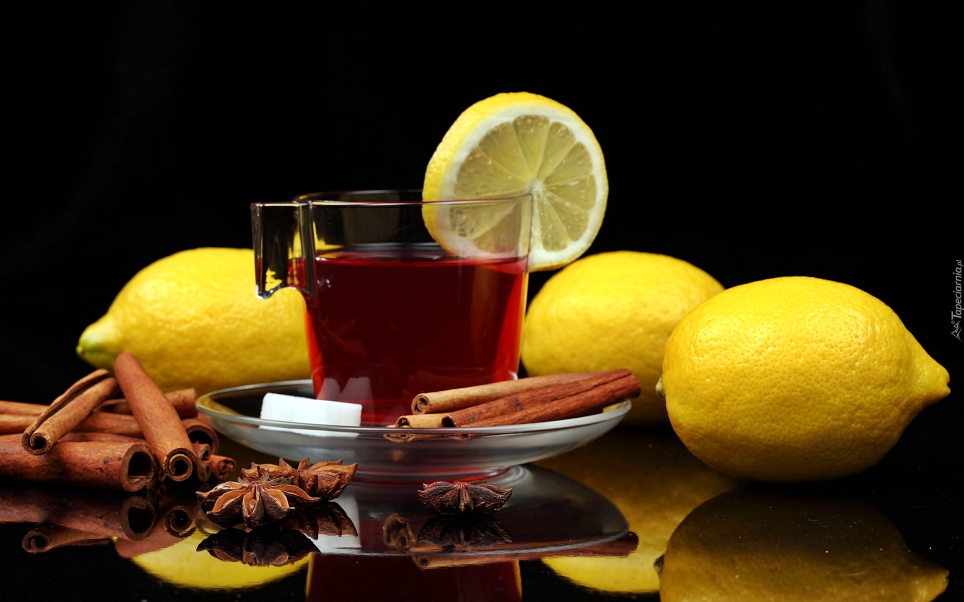 Edytor tapety: Szklanka, Herbaty, Cytryny, Karambola, Cynamon