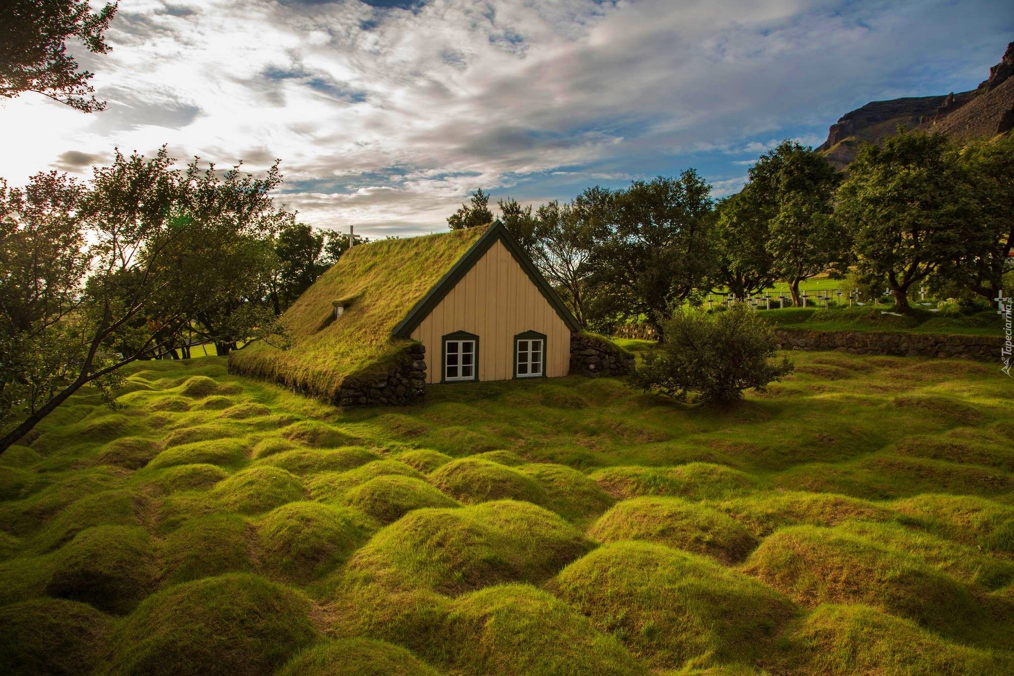 Edytor tapety: Dom, Ziemianka, Drzewa