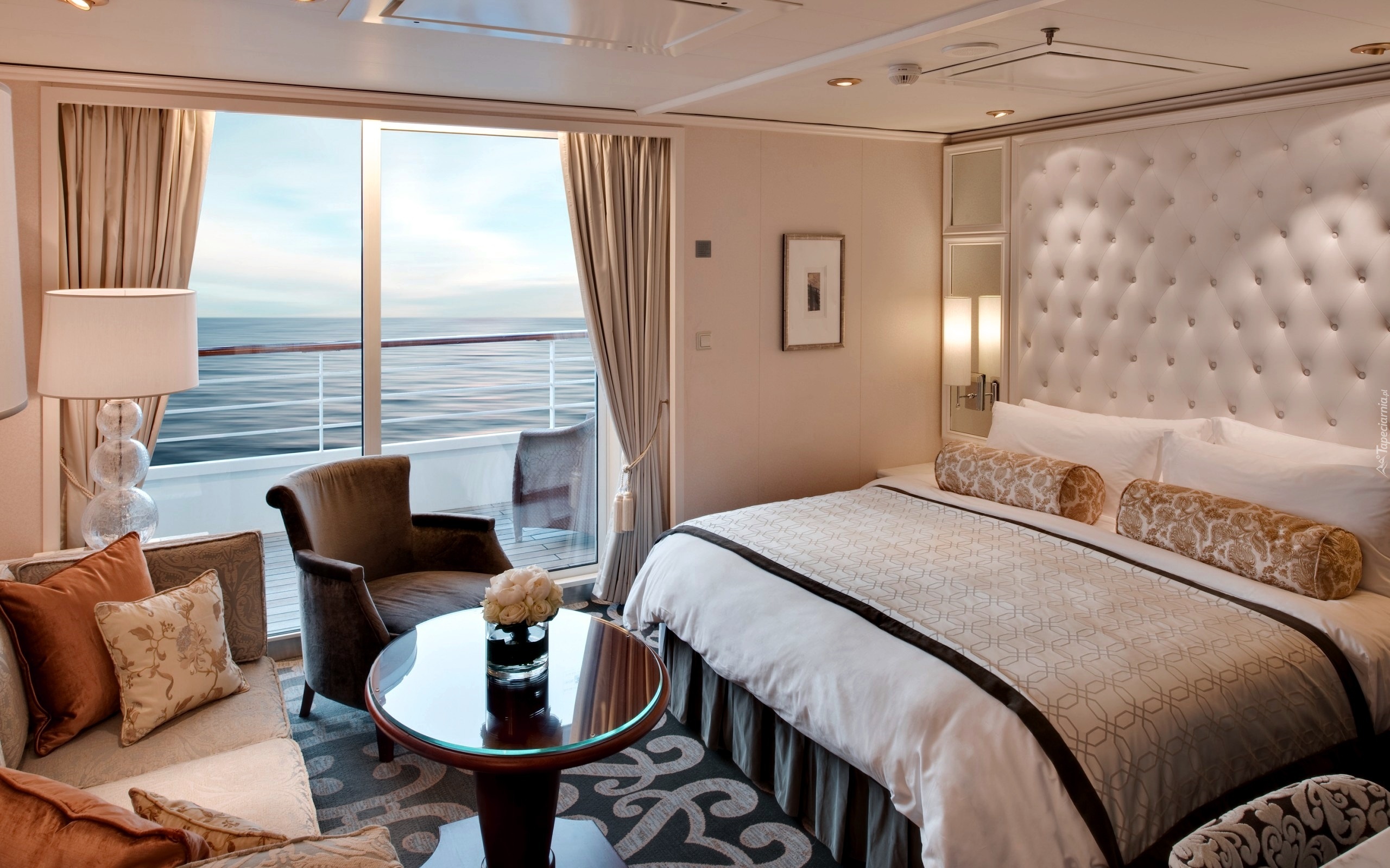 Edytor tapety: Hotelowa, Sypialnia, Taras, Widok, Morze