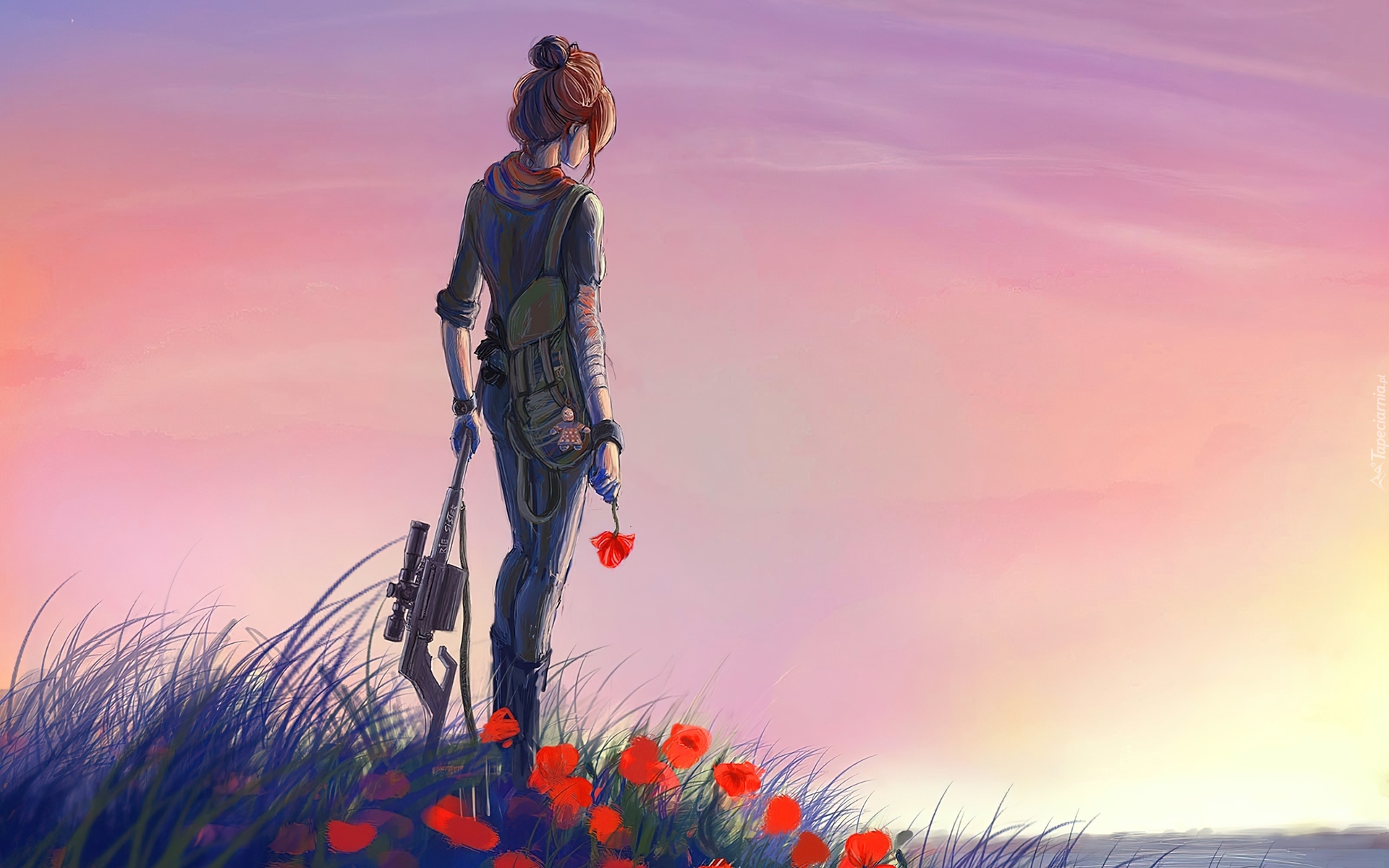 Edytor tapety: Dziewczyna, Żołnierz, Fantasy, Broń, Maki