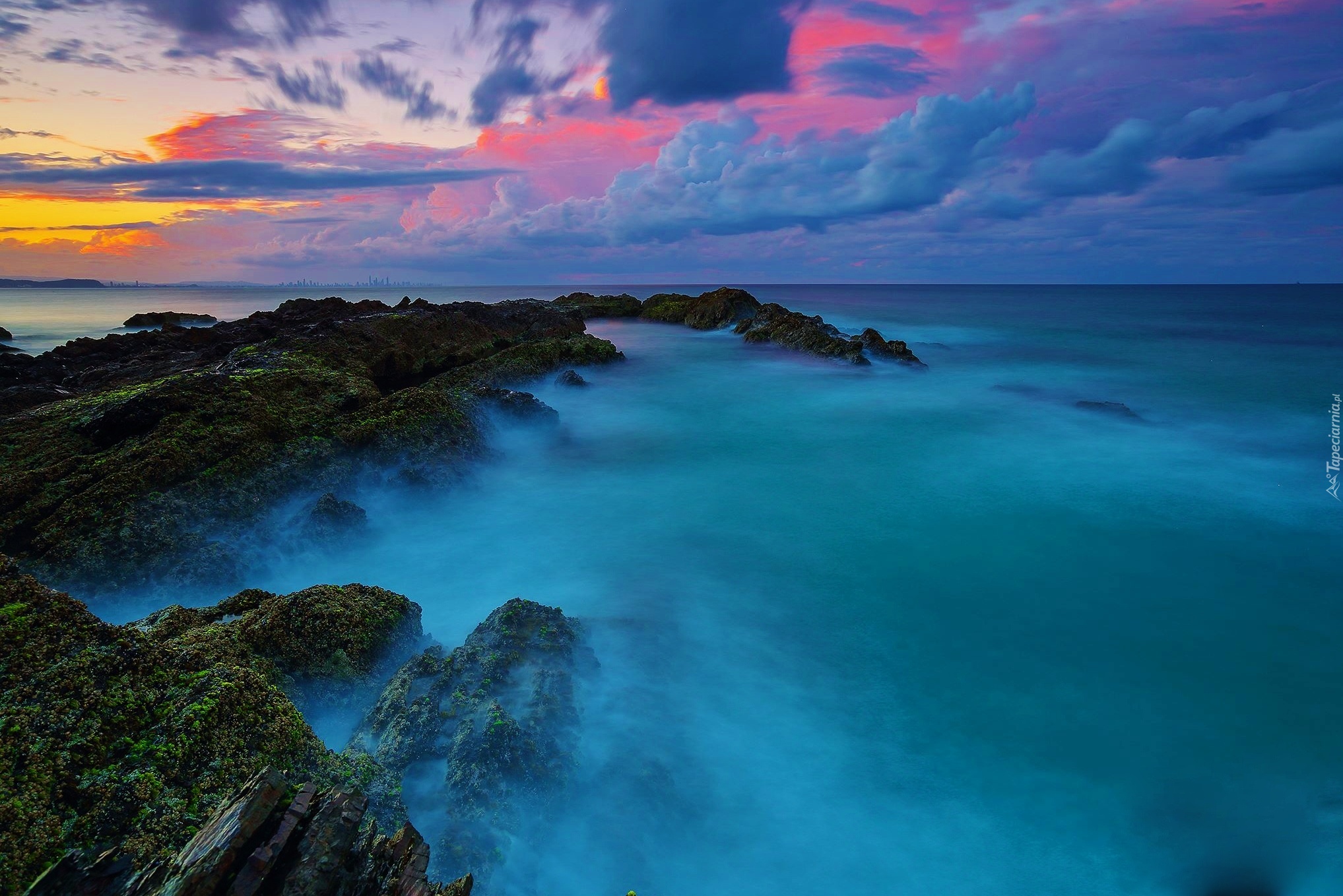 Edytor tapety: Zachód, Słońca, Morze, Skały