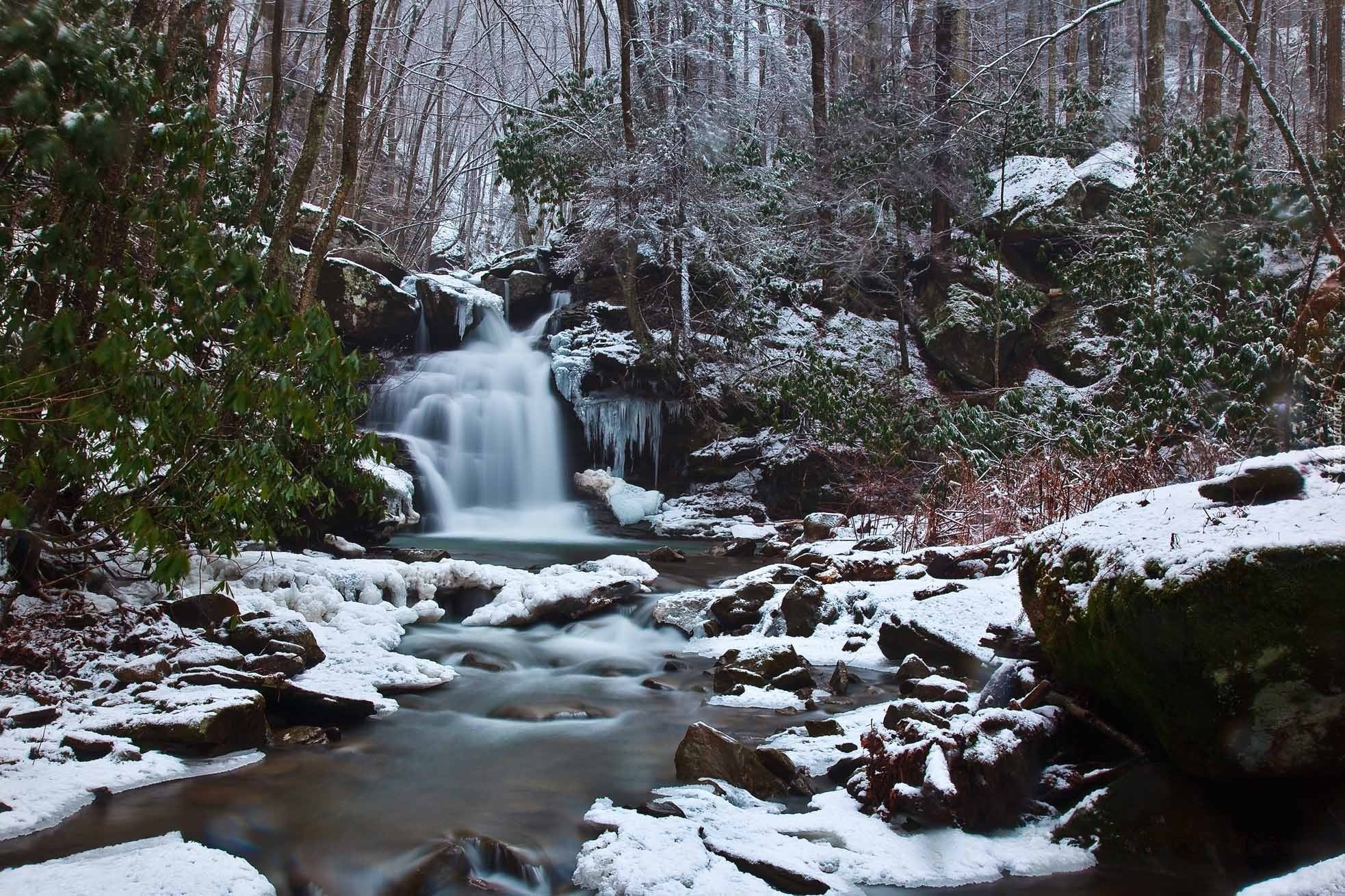 Edytor tapety: Wodospad, Las, Śnieg