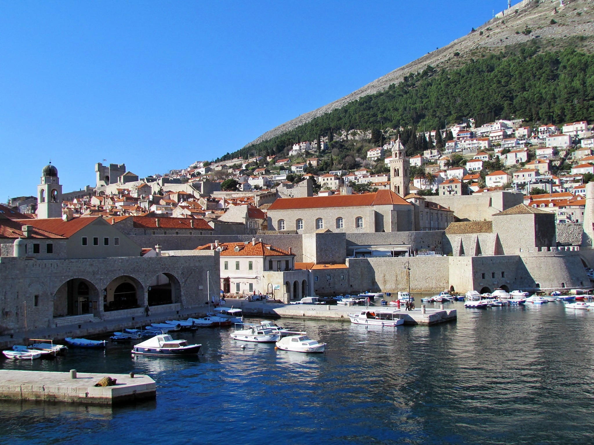 Edytor tapety: Panorama, Dubrownika, Morze, Marina, Jachty, Roślinność