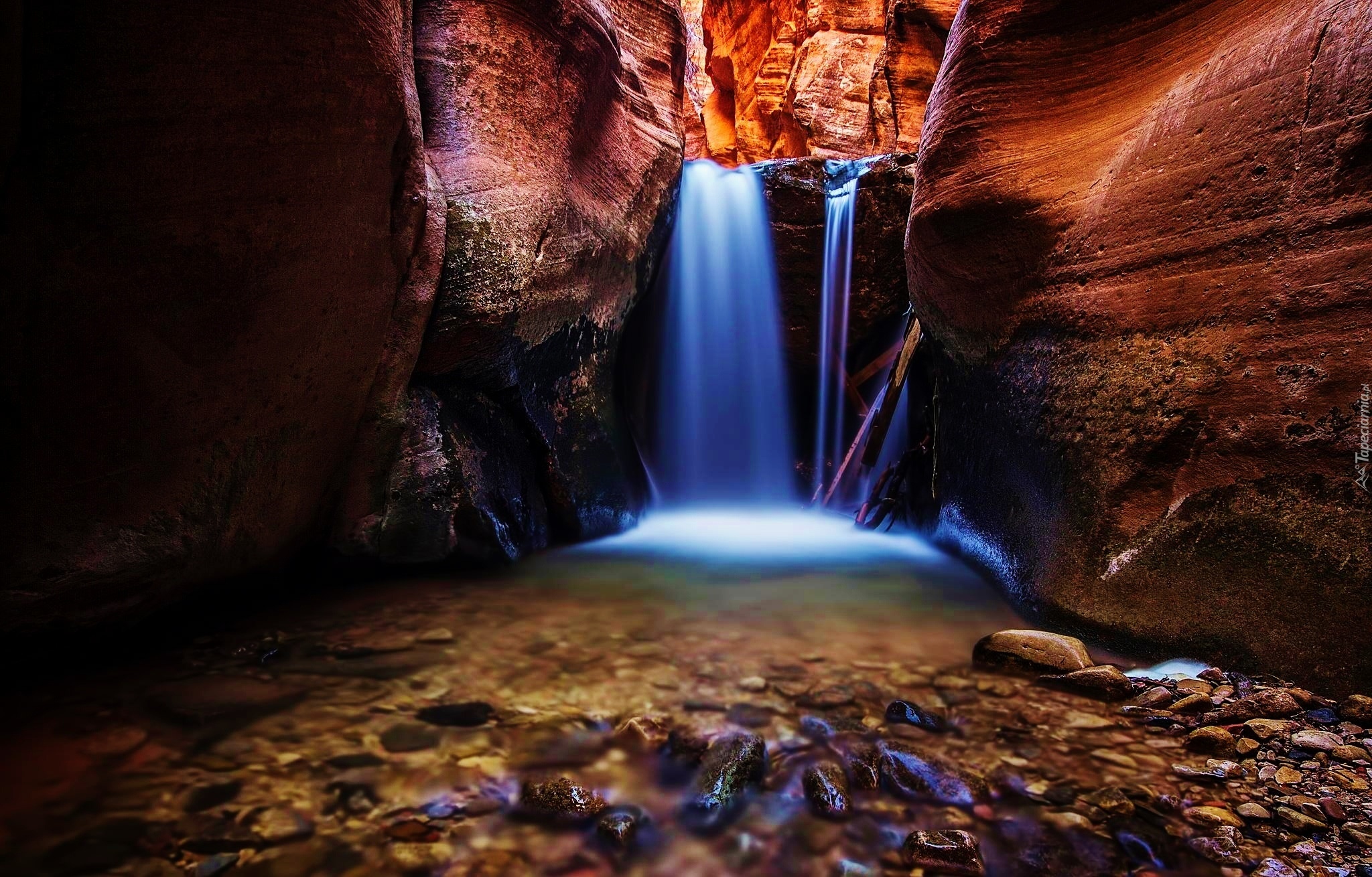 Edytor tapety: Wodospad, Kanion, Kamienie