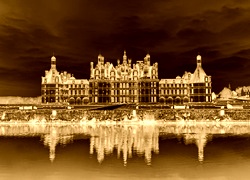 Edytor tapety: Francja, Zamek w Chambord, Château de Chambord, Rzeka Cosson, Odbicie
