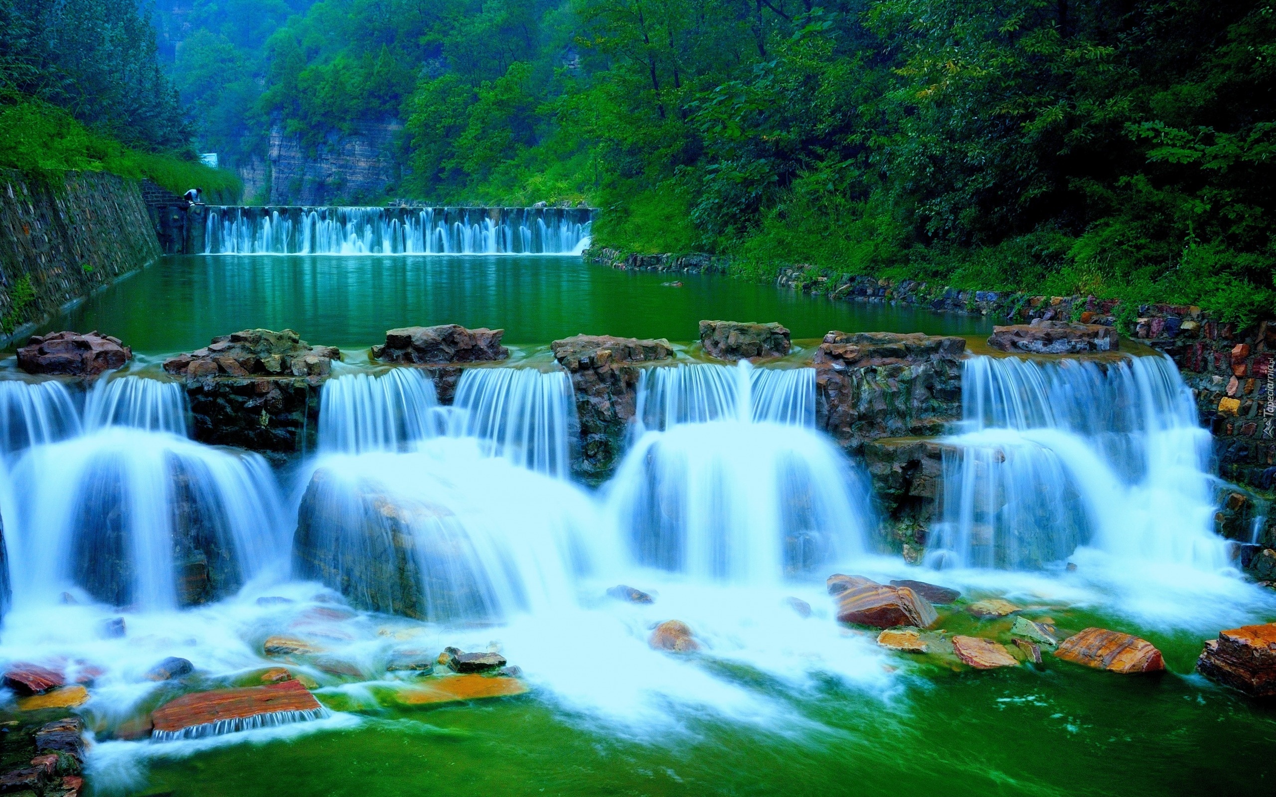 Edytor tapety: Wodospady, Kamienie, Skały, Las