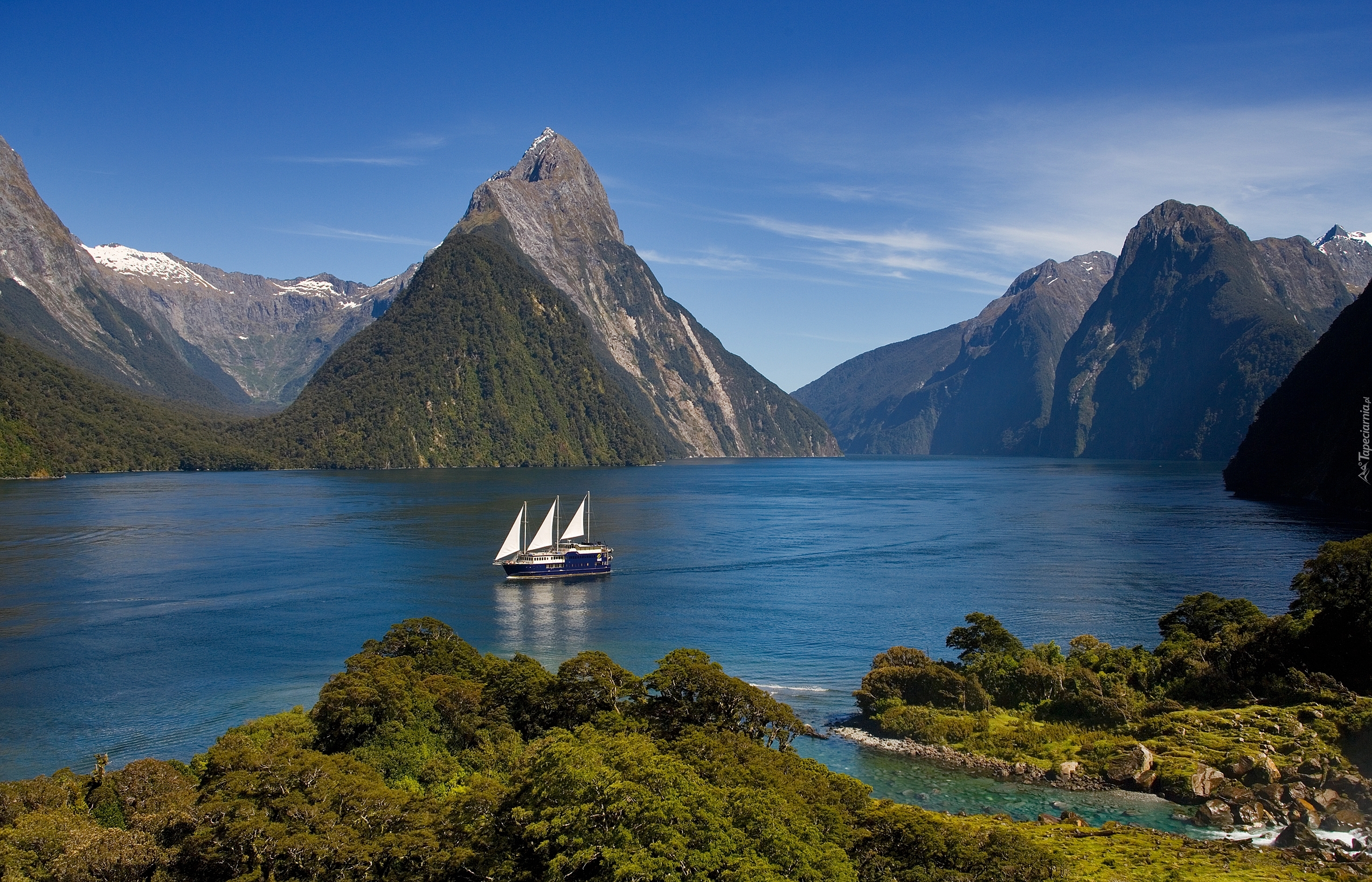 Edytor tapety: Góry, Lasy, Morze, Żaglowiec