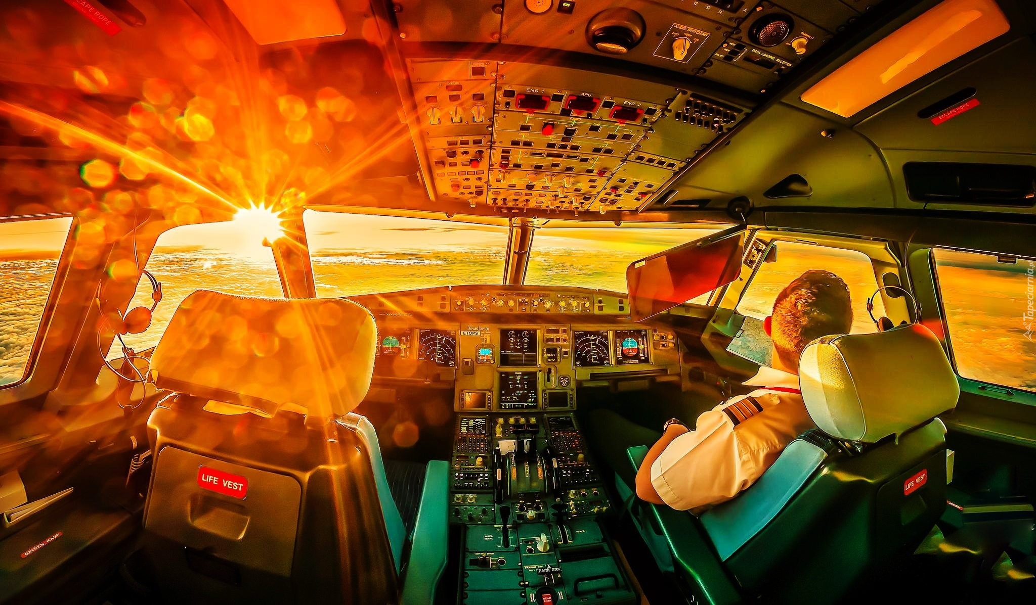 Edytor tapety: Samolot, Kabina, Pilot, Promienie, Słońca