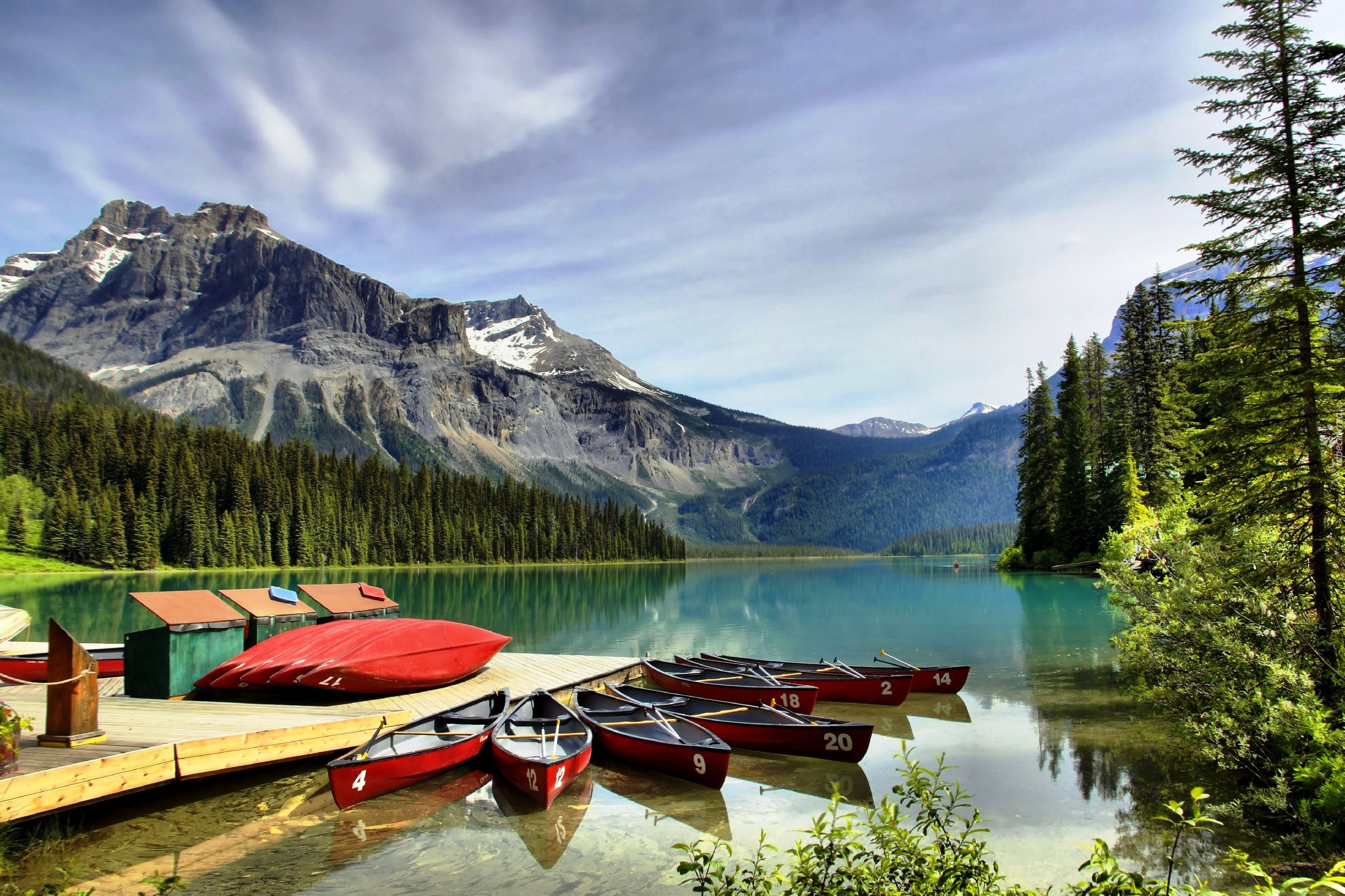 Edytor tapety: Kajaki, Pomost, Jezioro, Góry, Esmerald, Kanada