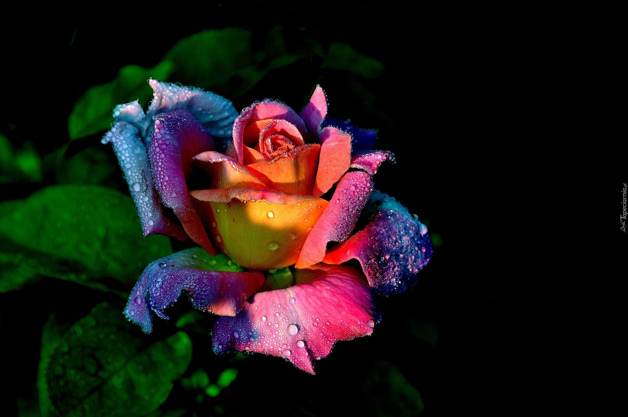 Edytor tapety: Kolorowa, Róża, Krople, Wody