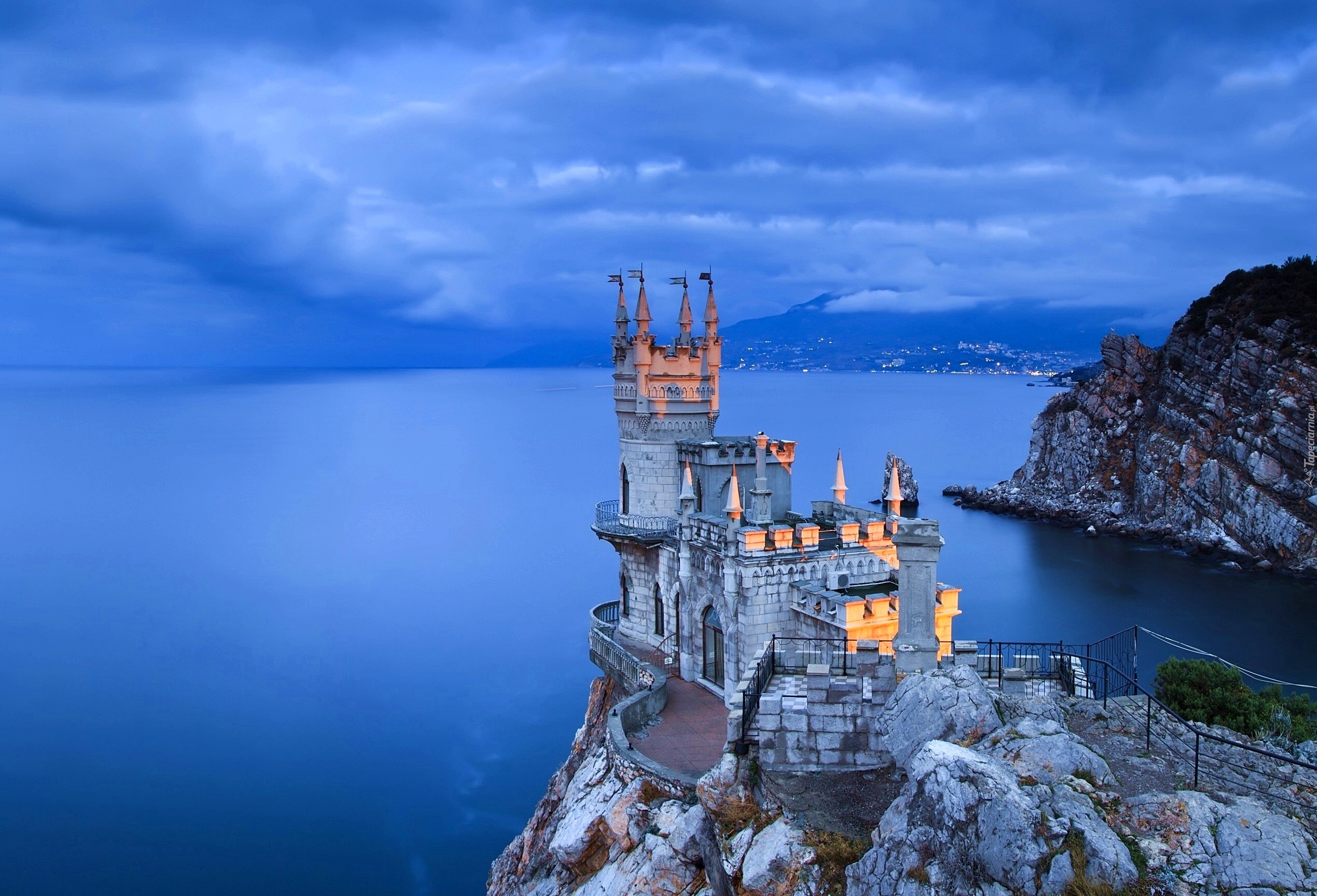 Edytor tapety: Zamek Jaskółcze Gniazdo, Miejscowość Haspra, Półwysep Aj-Todor, Krym, Ukraina, Skała, Morze Czarne