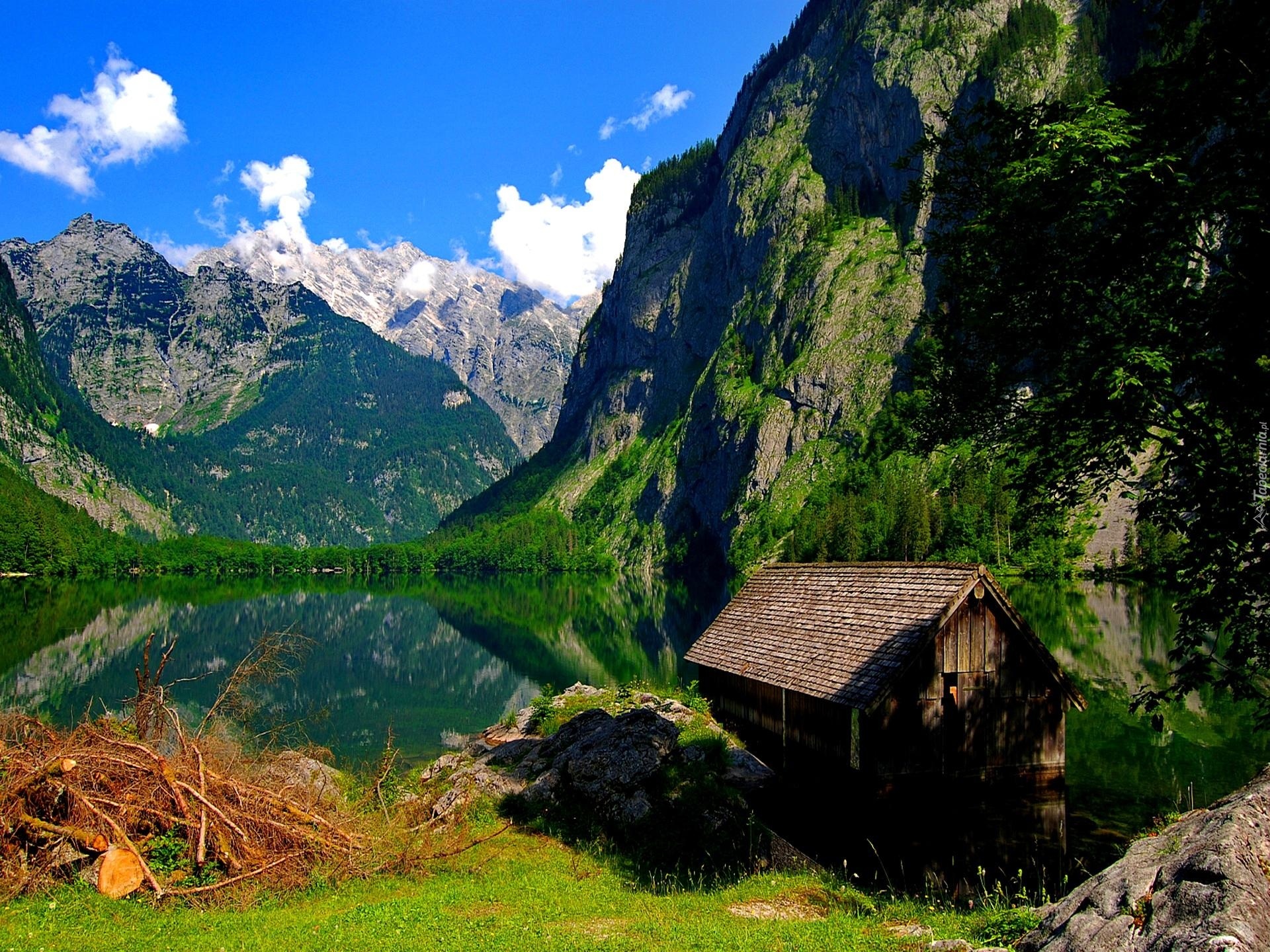 Edytor tapety: Góry, Jezioro, Szopa