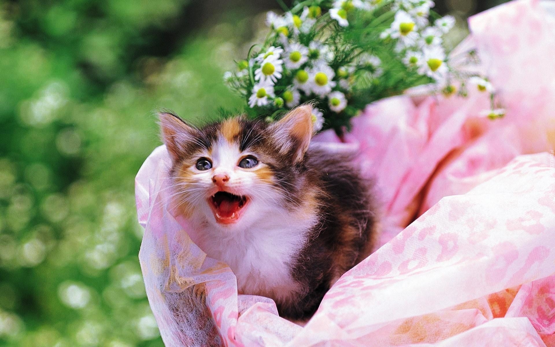 Edytor tapety: Kotek, Kwiatki