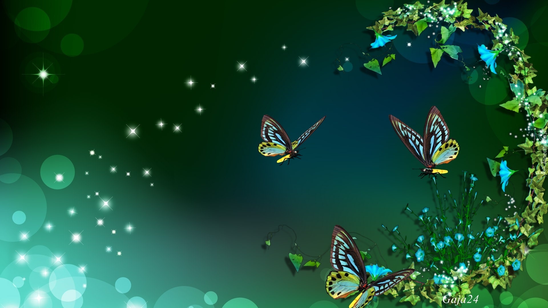 Edytor tapety: Motyle, Niebieskie Kwiatki, Bokeh, Art