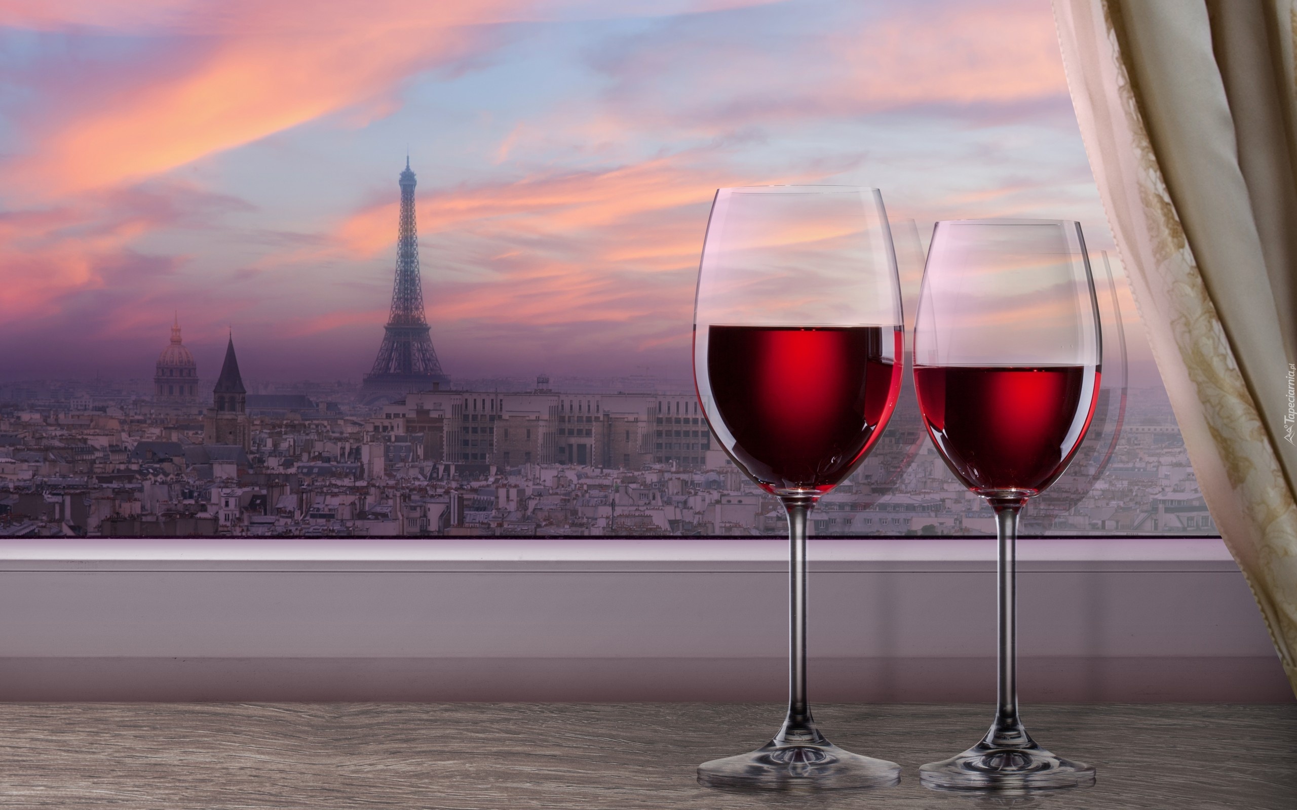 Edytor tapety: Wieża, Eiffla, Paryż, Widok, Z, Okna, Wino