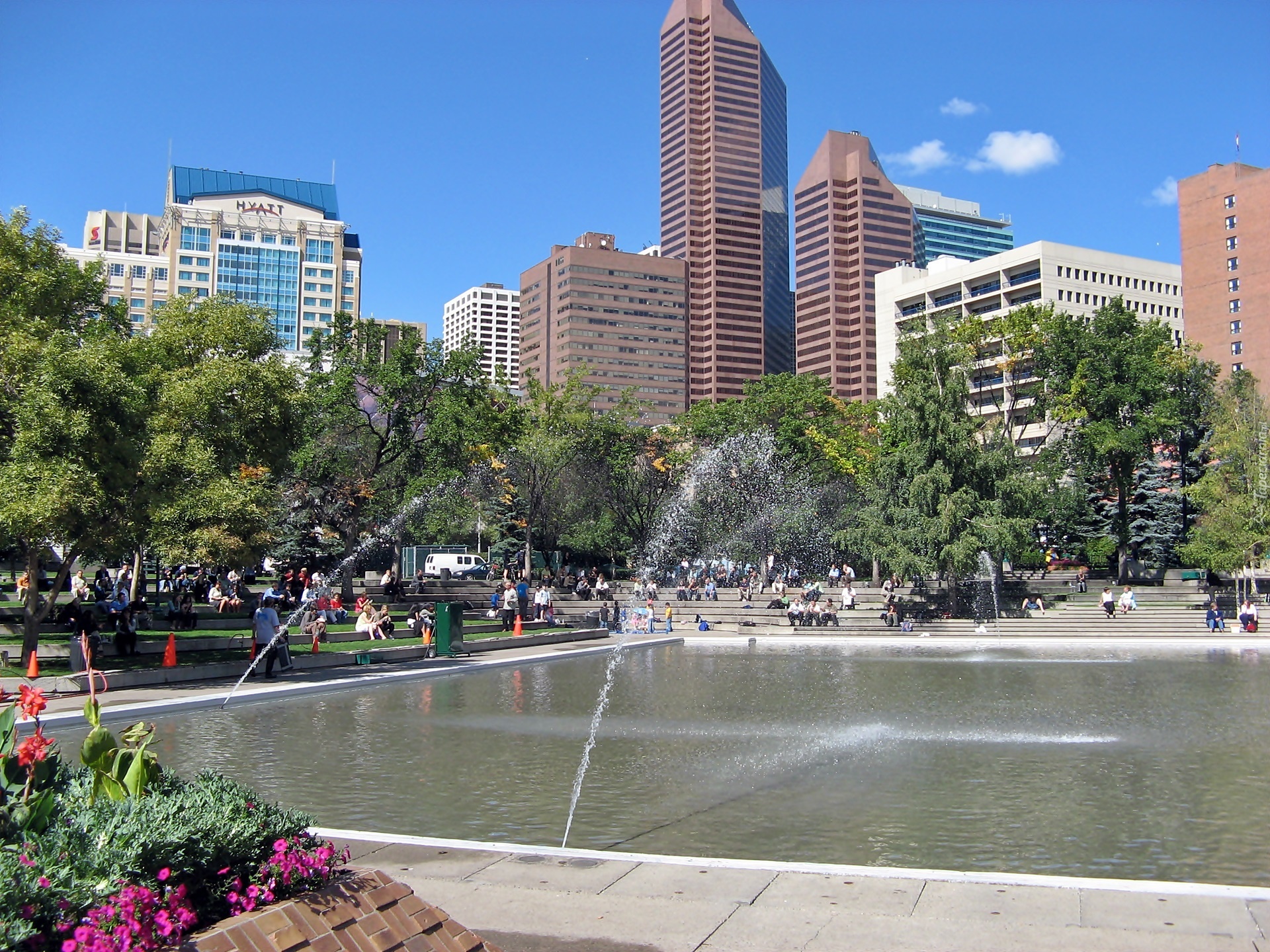 Edytor tapety: Calgary, Panorama, Miasta, Park, Sadzawka, Fontanny