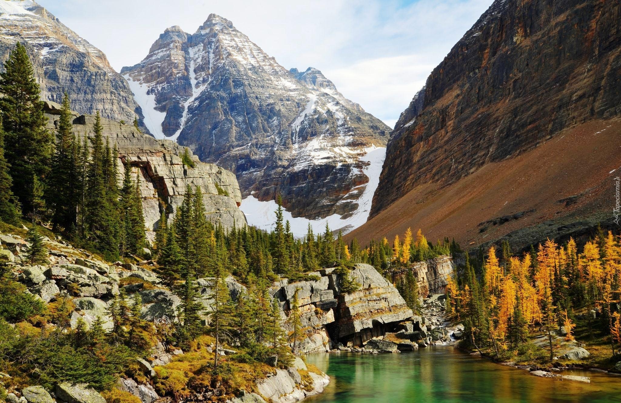 Edytor tapety: Góry, Skały, Jeziorko, Drzewa