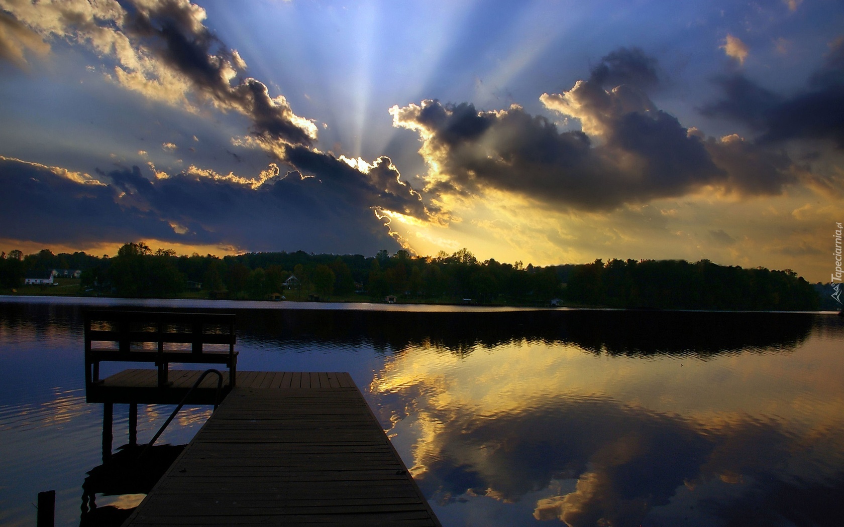 Edytor tapety: Jezioro, Chmury, Molo