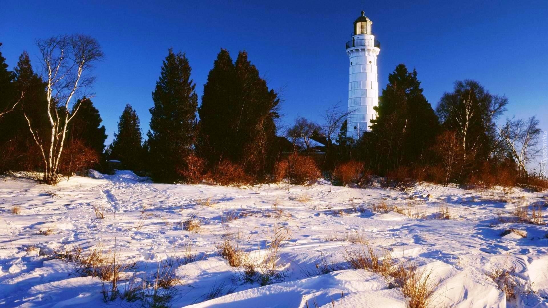 Edytor tapety: Latarnia Morska, Drzewa, Zima