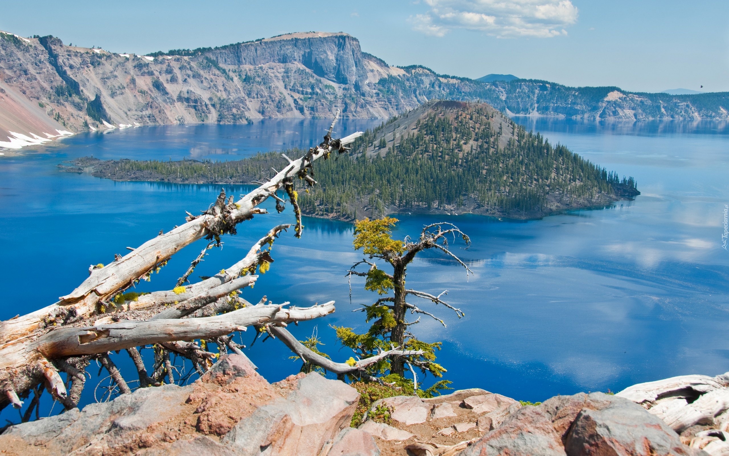 Edytor tapety: Jezioro, Wyspa, Góry, Drzewa, Złamany, Konar
