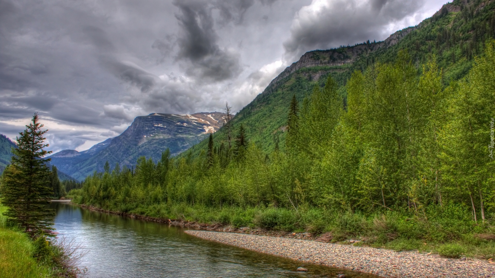 Edytor tapety: Góry, Las, Rzeka, Chmury