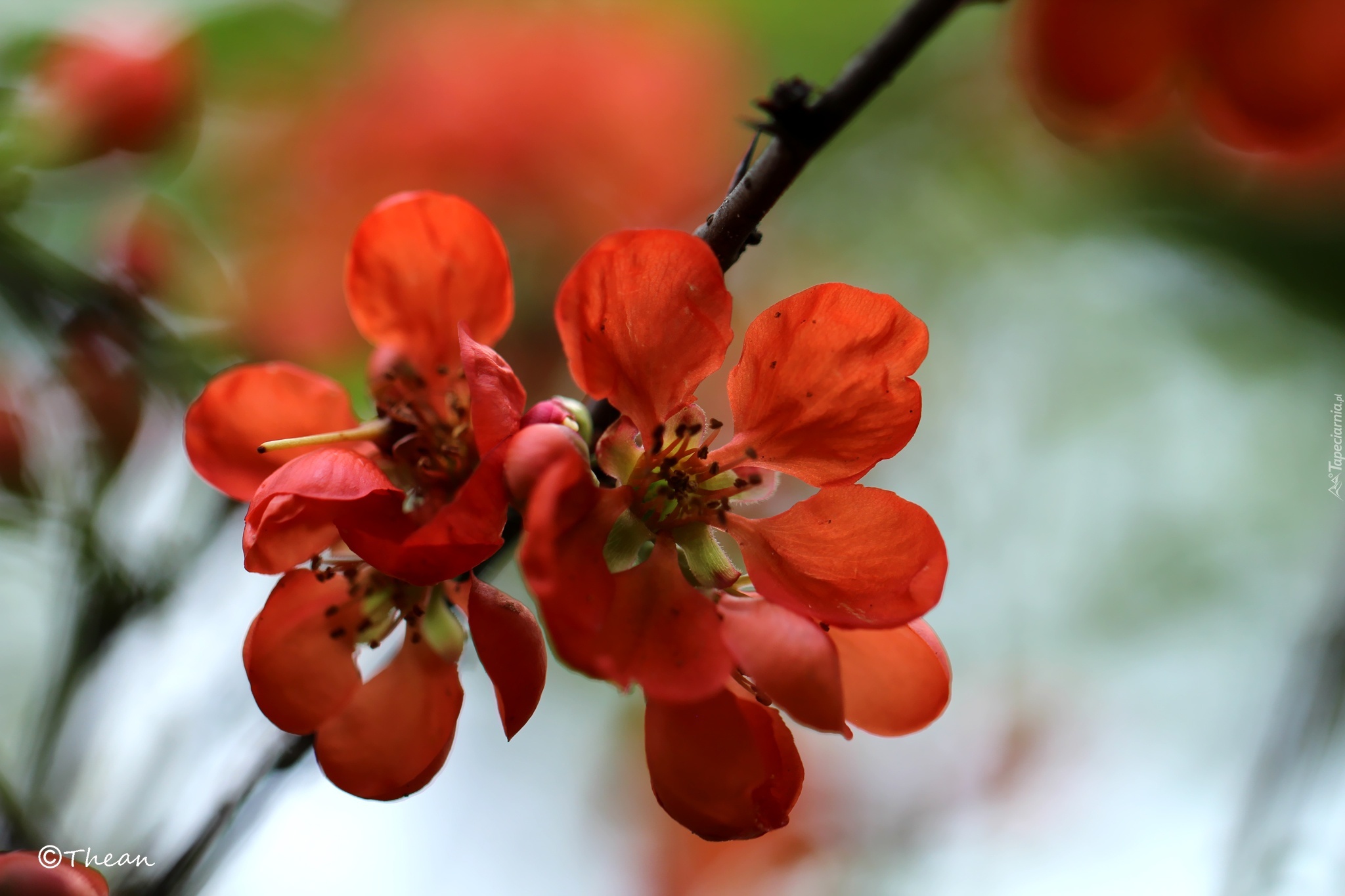 Edytor tapety: Krzew, Pigwa, Czerwone, Kwiaty