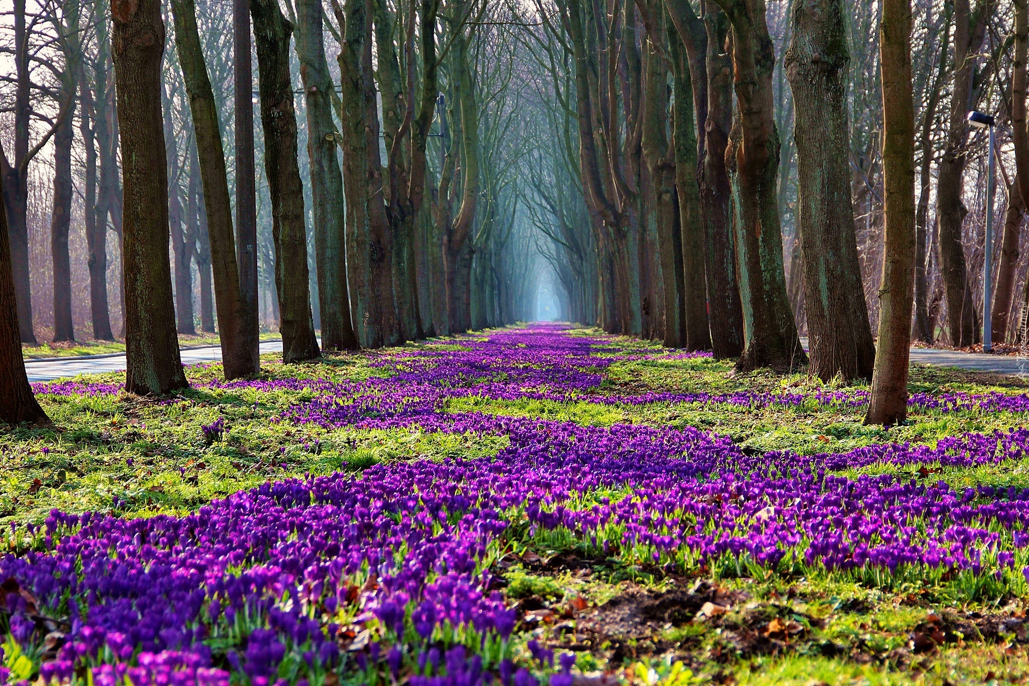 Edytor tapety: Park, Szpaler, Drzew, Krokusy, Wiosna