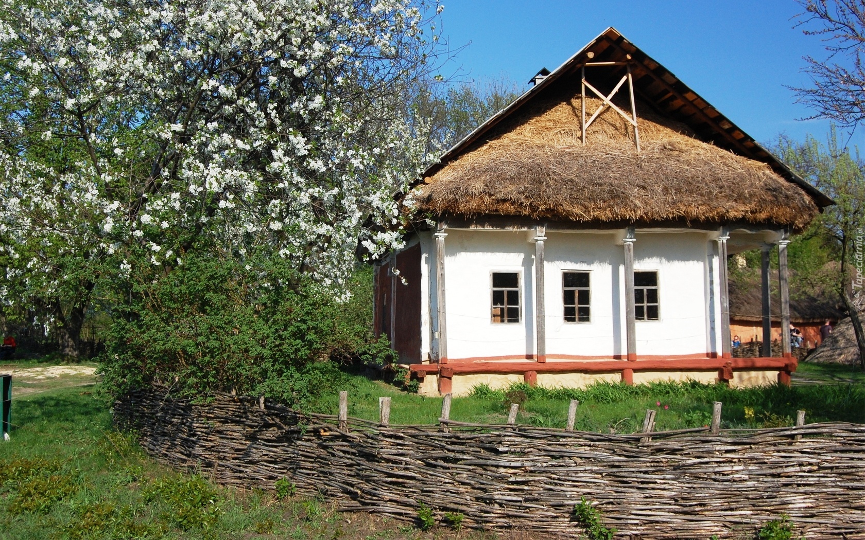 Edytor tapety: Dom, Ogrodzenie, Kwitnące, Drzewo
