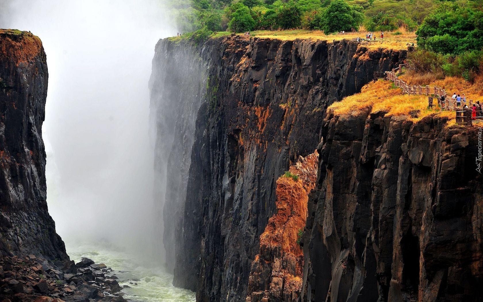 Edytor tapety: Wodospad, Wiktorii, Skały, Turyści, Zambia