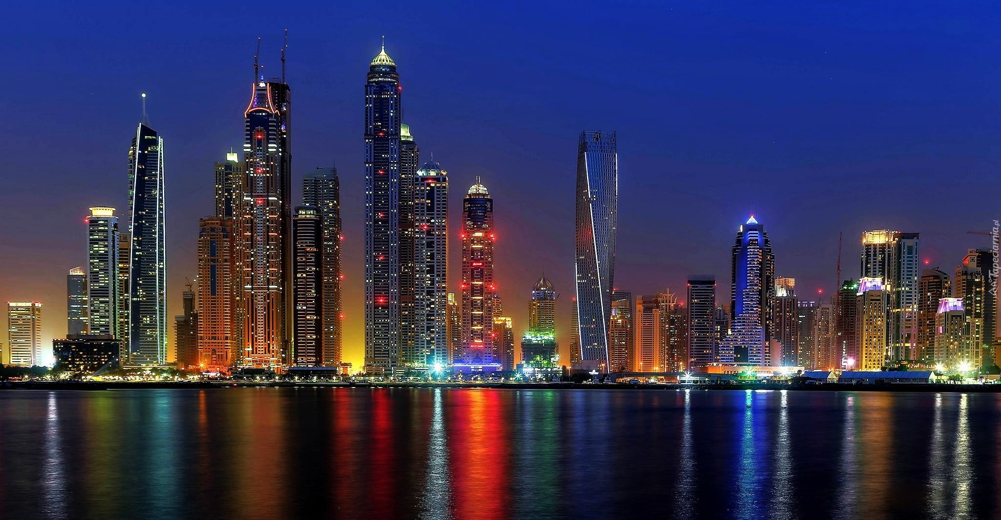 Edytor tapety: Wieżowce, Oświetlenie, Noc, Woda