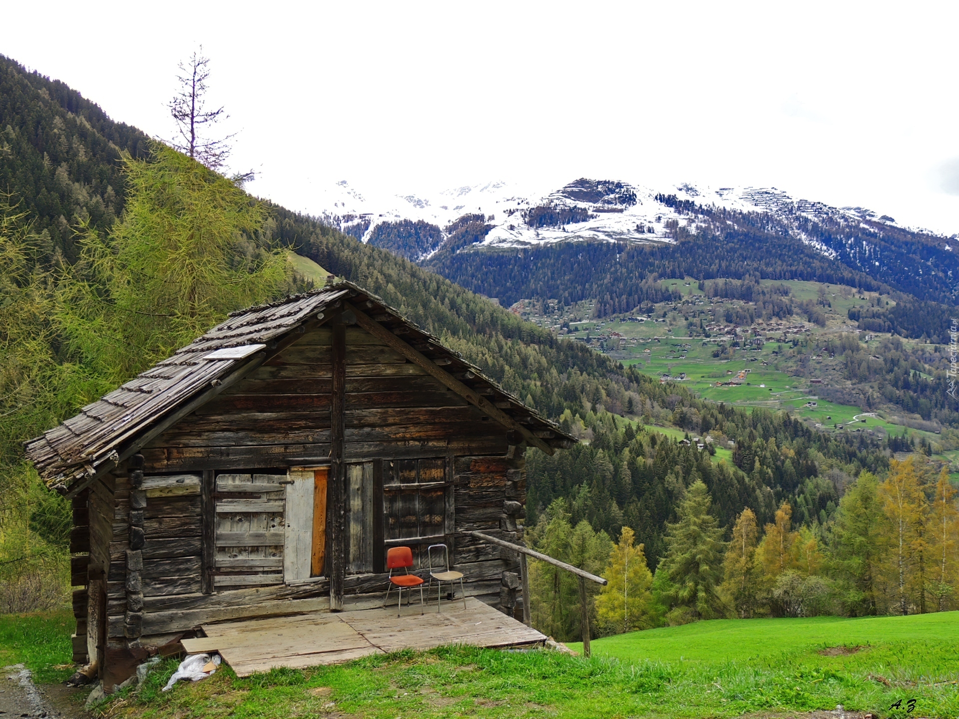 Edytor tapety: Domek, Góry, Lasy, Dolina, Łąki, Osada