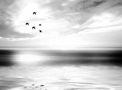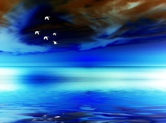 Edytor tapety: Zachód, Słońca, Morze, Ptaki