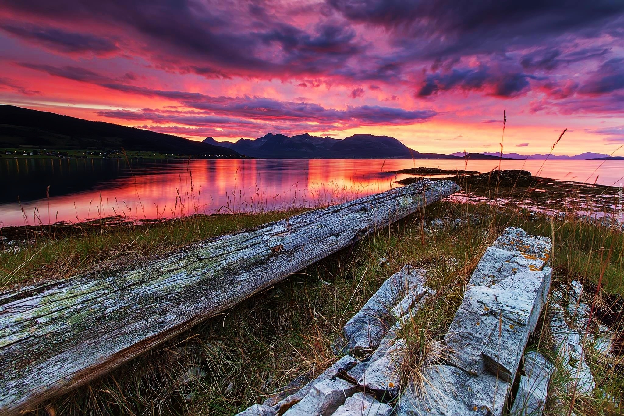 Edytor tapety: Zachód, Słońca, Morze, Góry