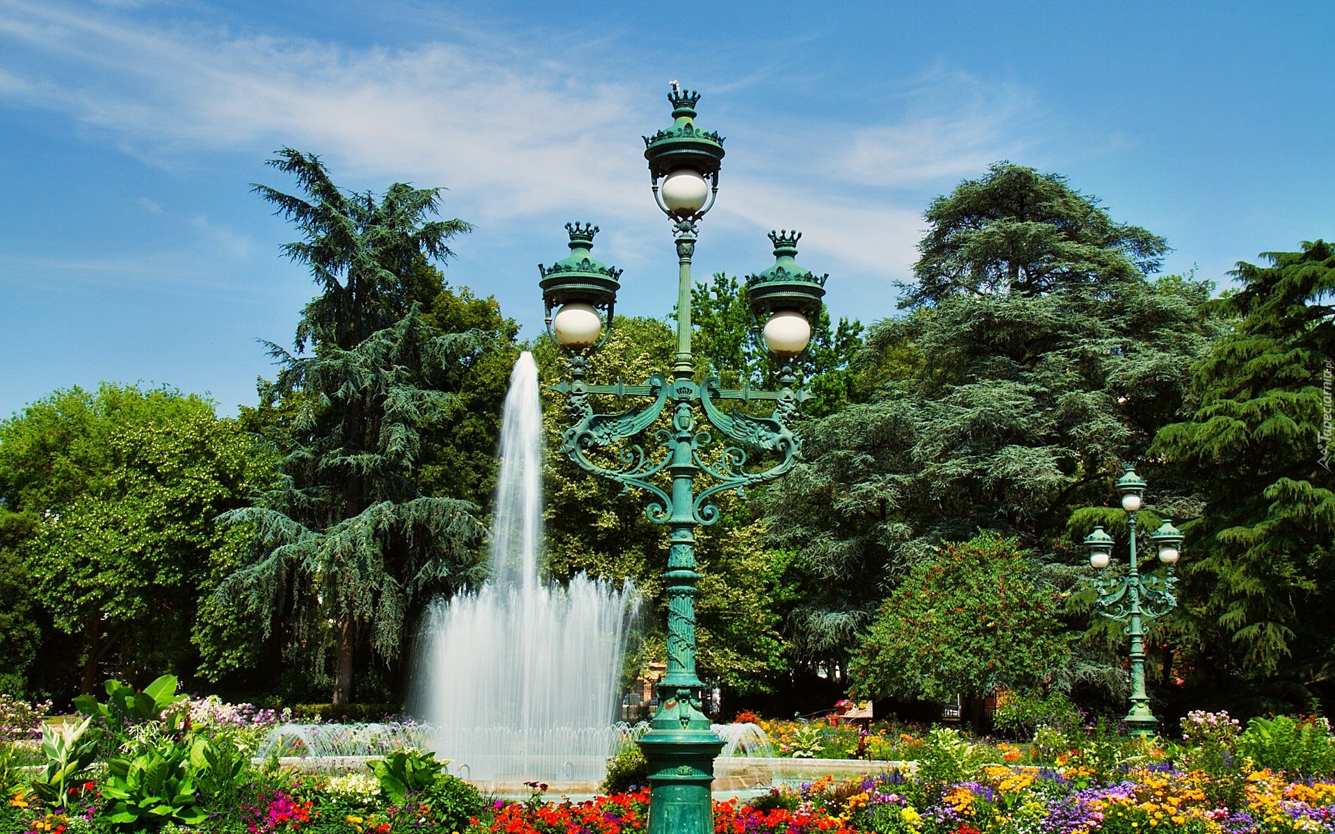 Edytor tapety: Tuluza, Francja, Park, Fontana, Latarnie