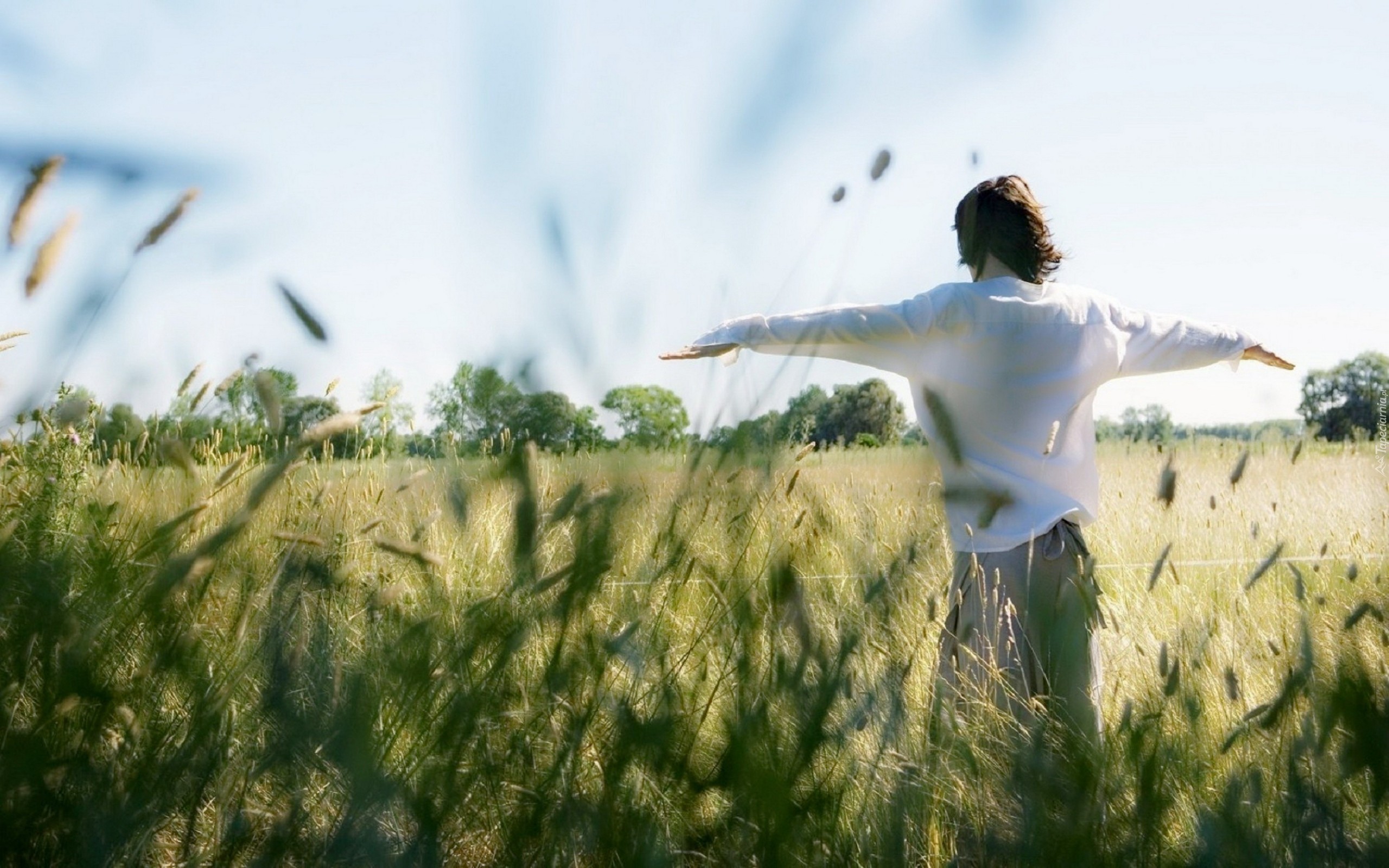 Edytor tapety: Kobieta, Tył, Trawa