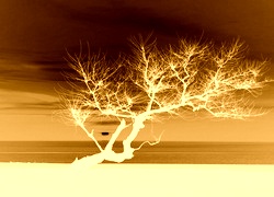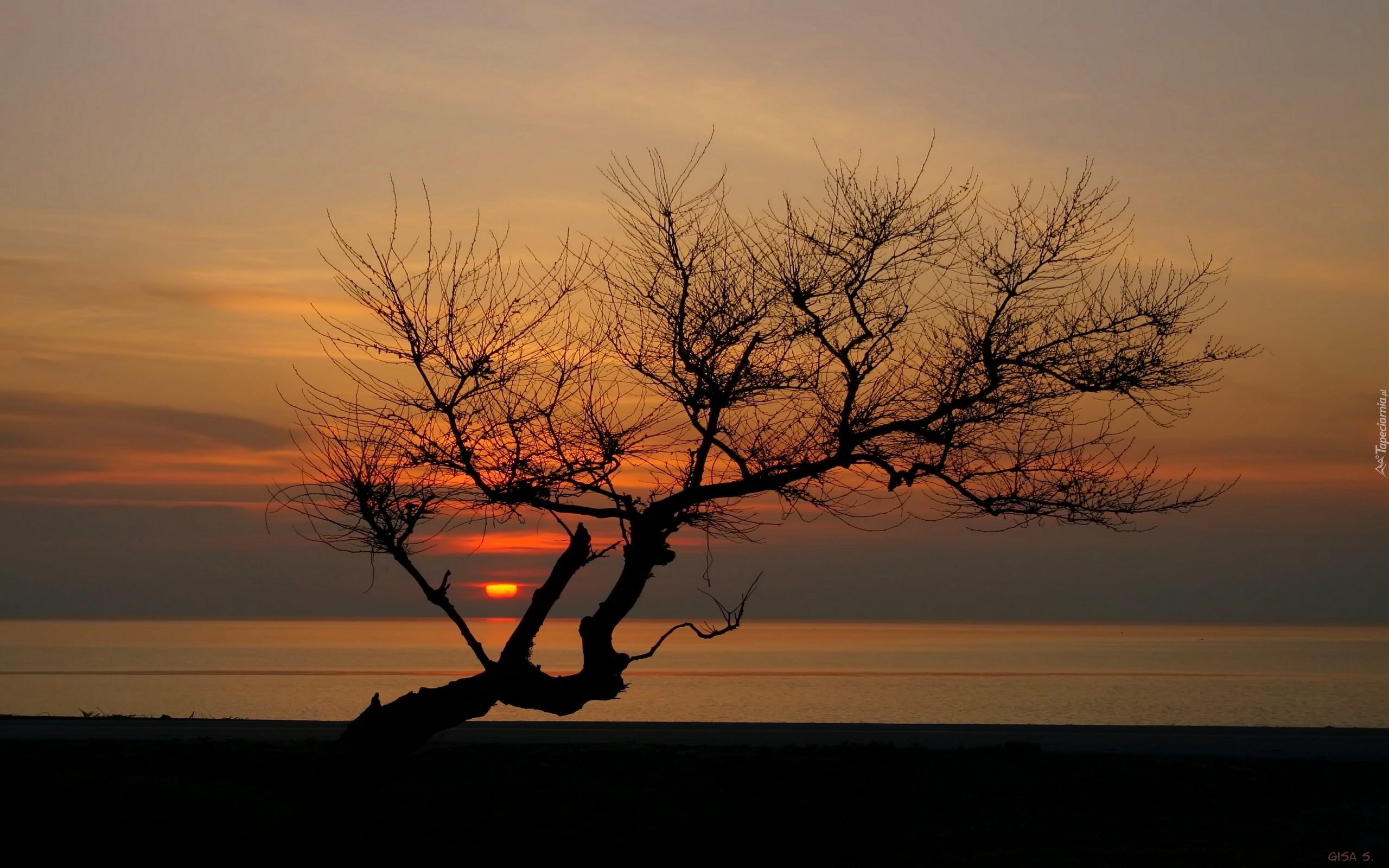 Edytor tapety: Morze, Zachód Słońca, Drzewo