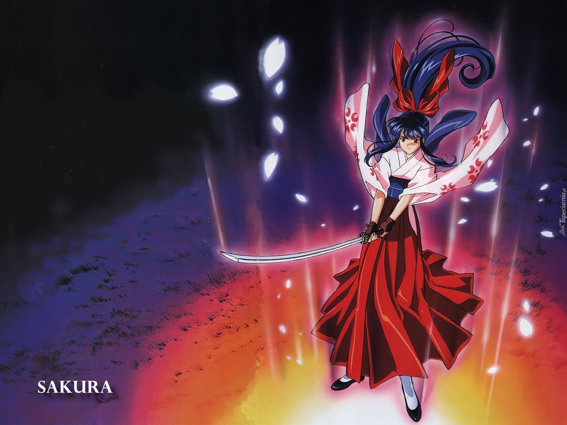 Edytor tapety: Sakura Wars, czerwona spódnica, miecz