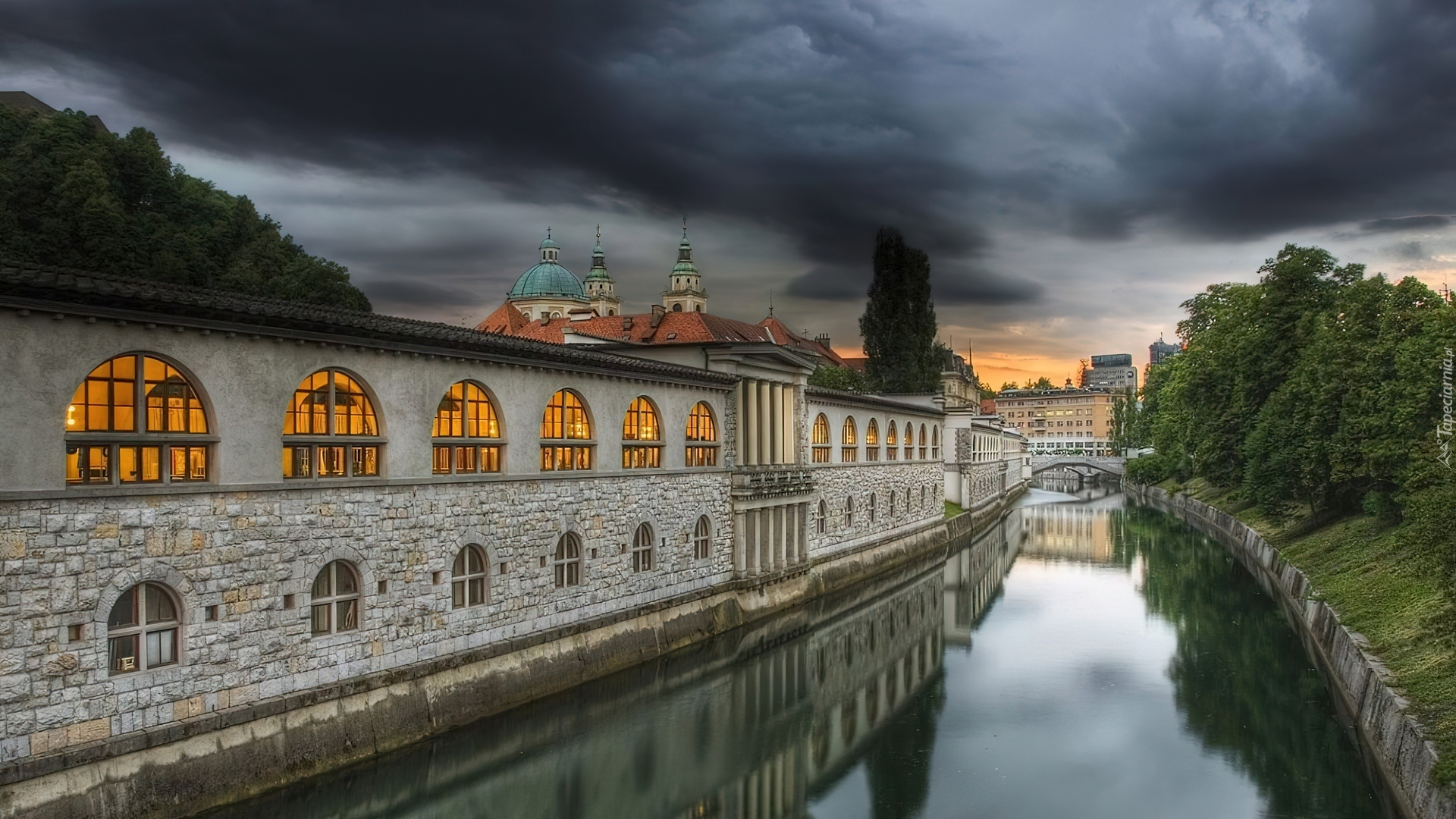 Edytor tapety: Słowenia, Lublana, Budynek, Rynek Centralny