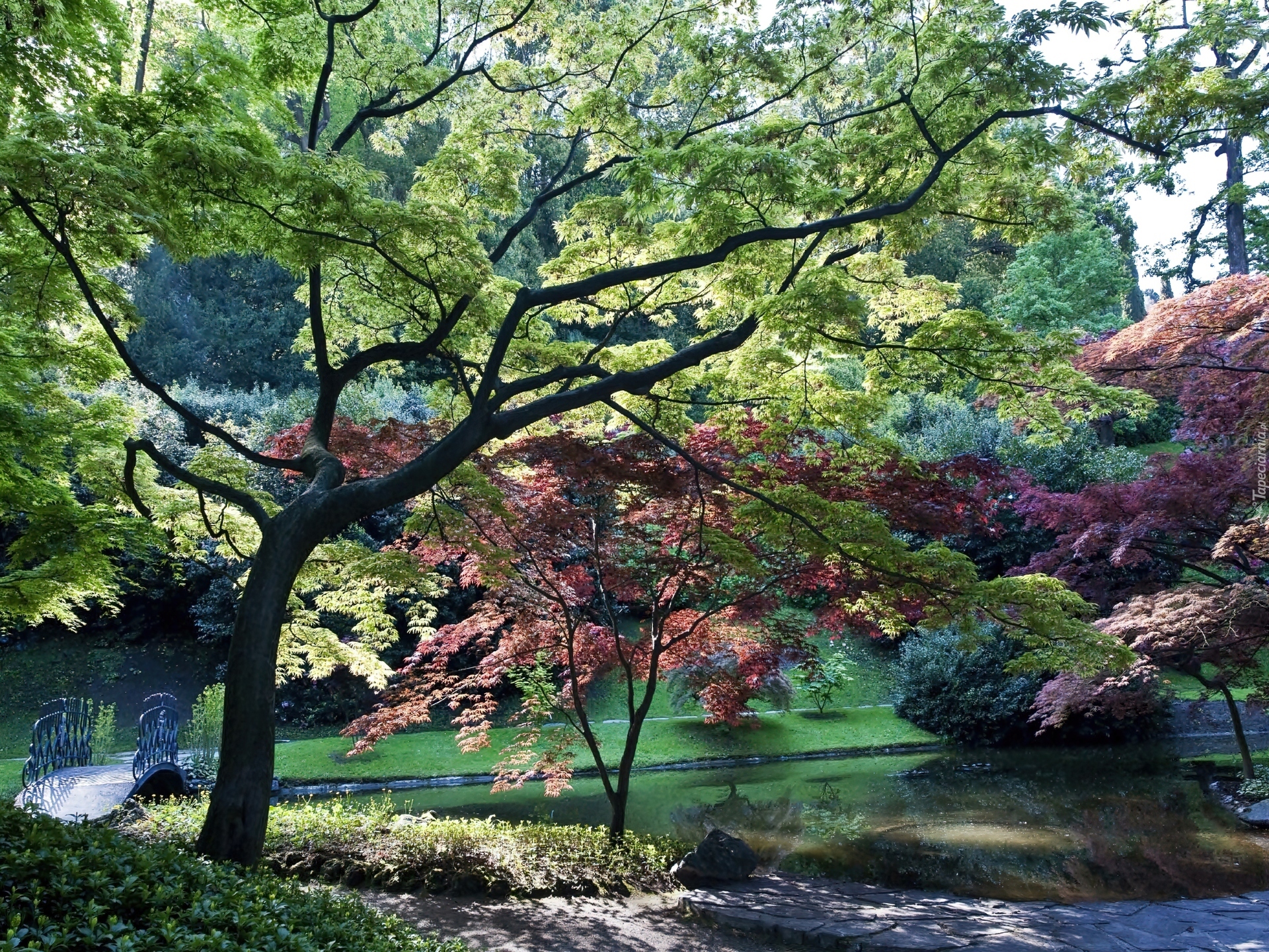 Edytor tapety: Park, Rzeczka, Mostek, Przebijające, Światło
