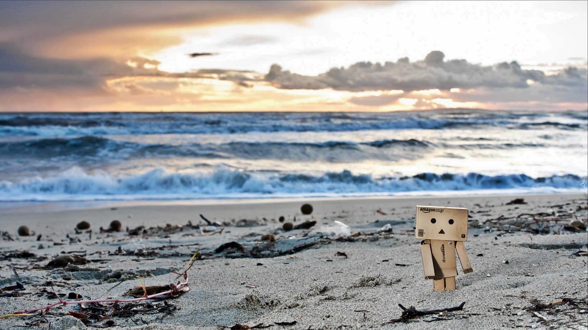 Edytor tapety: Danbo, Morze, Plaża, Chmury, Przebijające, Światło, Rozmycie
