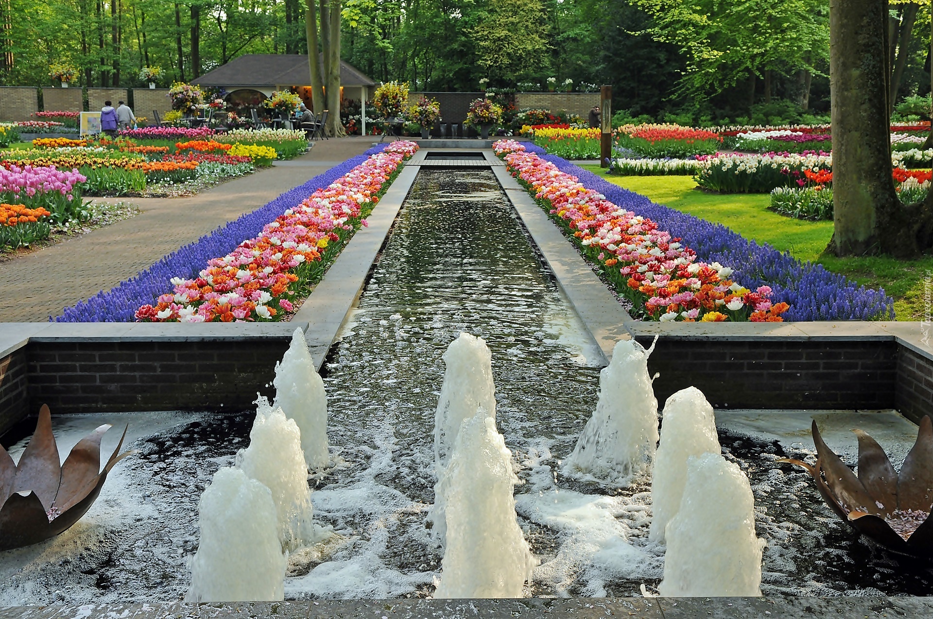 Edytor tapety: Lisse, Park, Keukenhof, Fontanna, Gazony Kwiatowe, Holandia