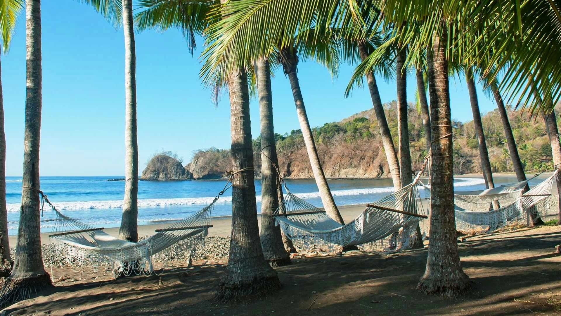Edytor tapety: Plaża, Morze, Hamaki, Palmy
