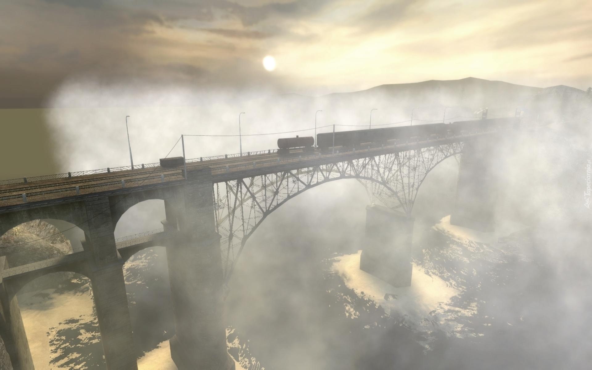 Edytor tapety: Most, Pociąg, Rzeka, Mgła