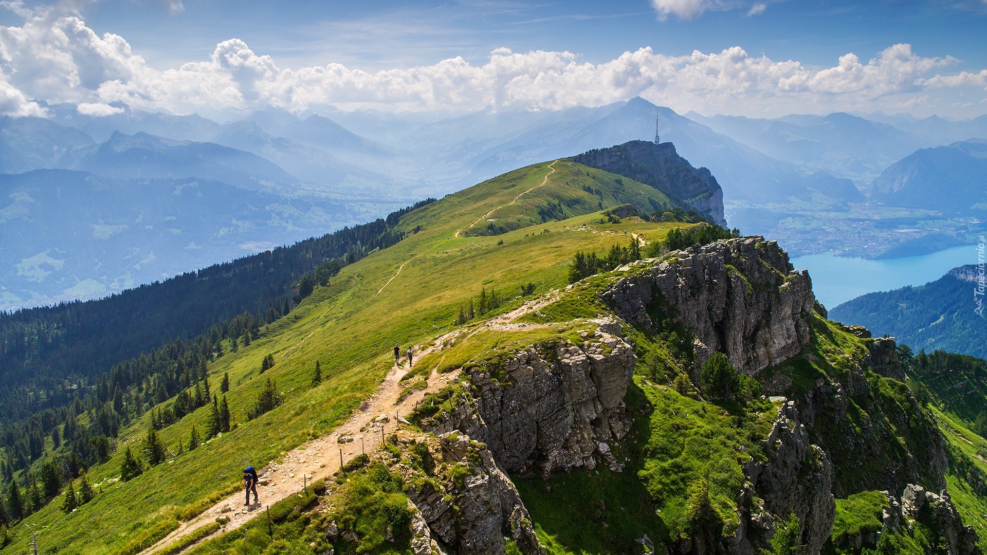 Edytor tapety: Góry, Drzewa, Turyści