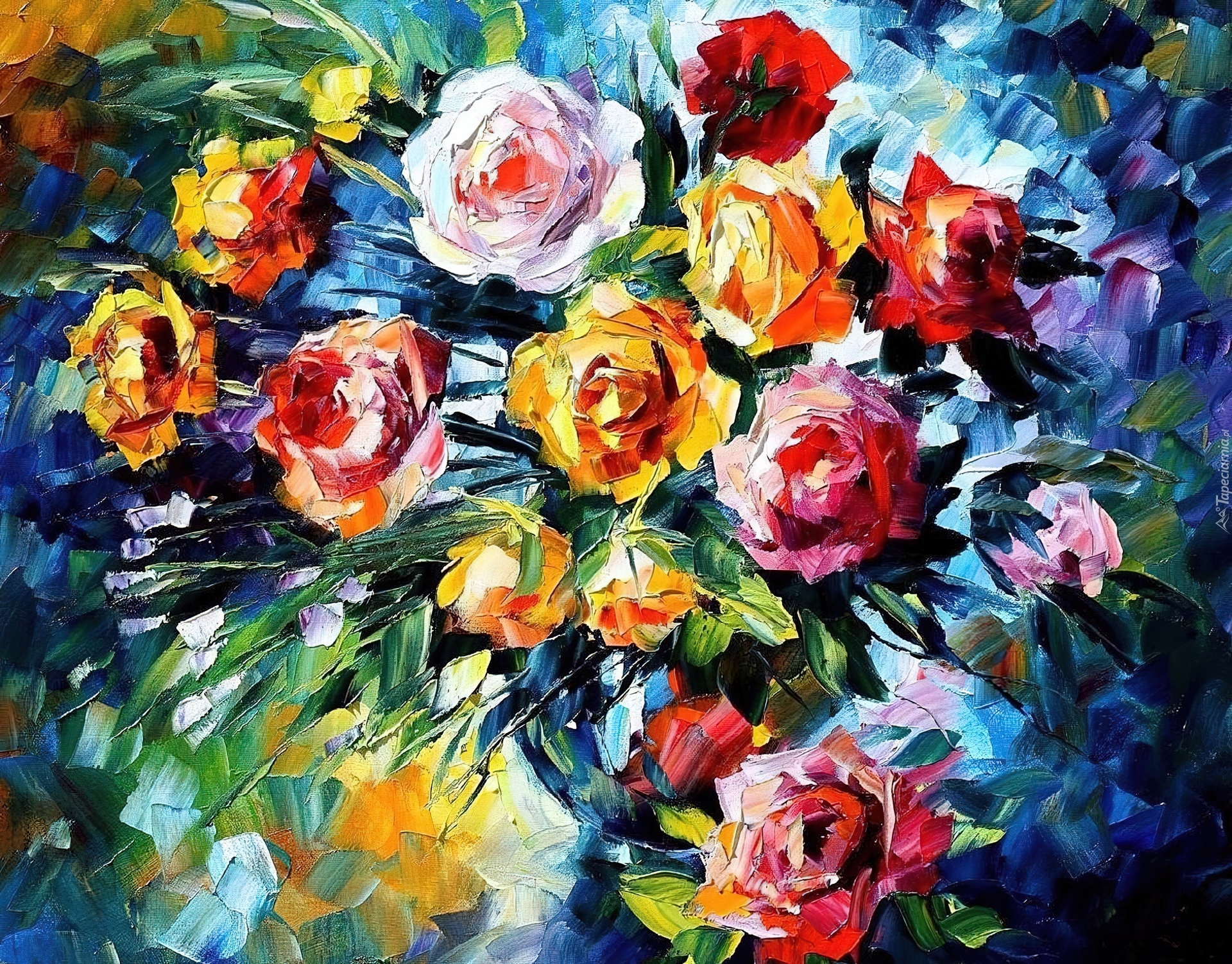 Edytor tapety: Leonid Afremov, Bukiet Róż, Obraz