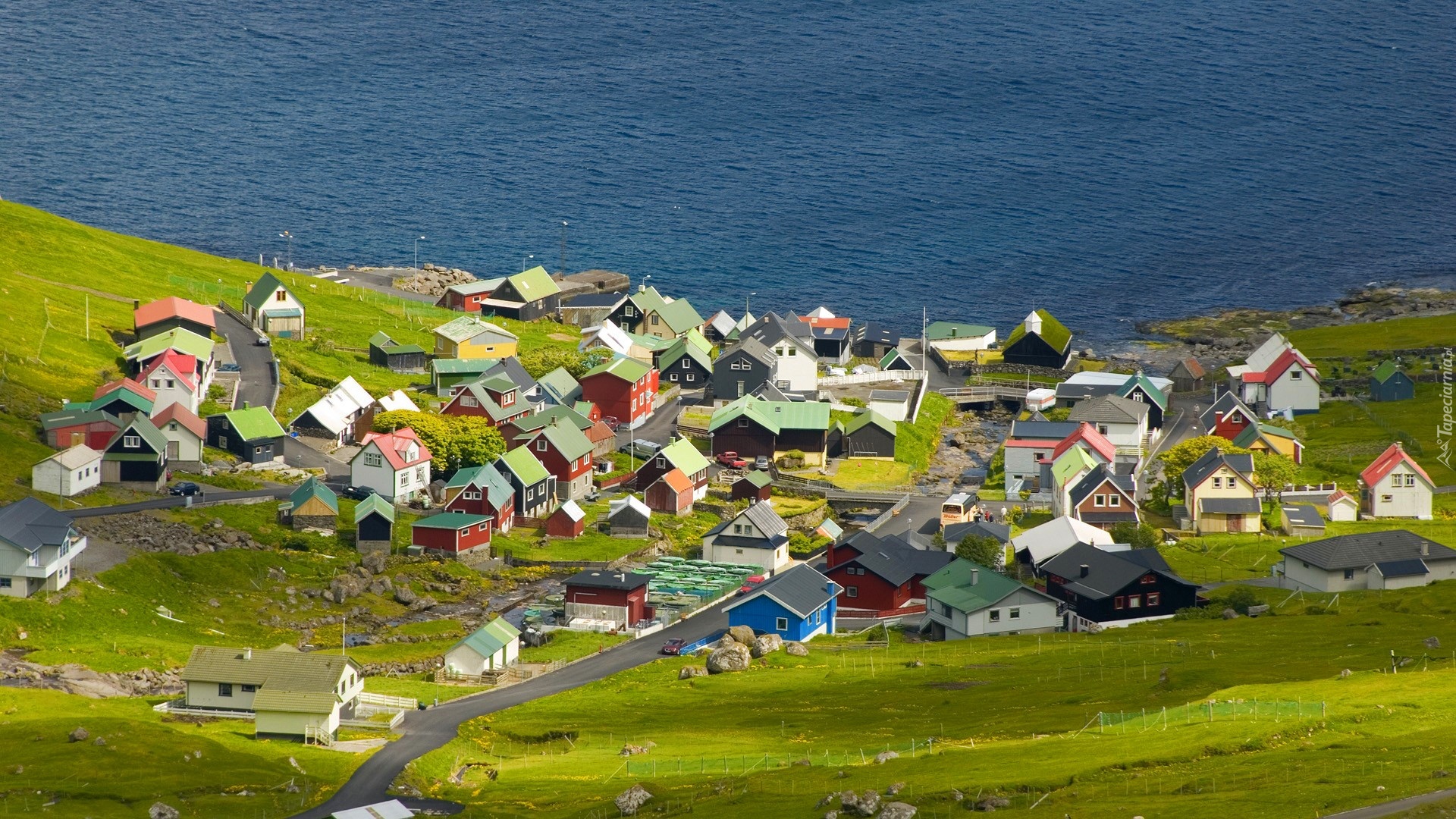 Edytor tapety: Wybrzeże, Miasteczko, Domy, Drogi, Łąki, Norwegia