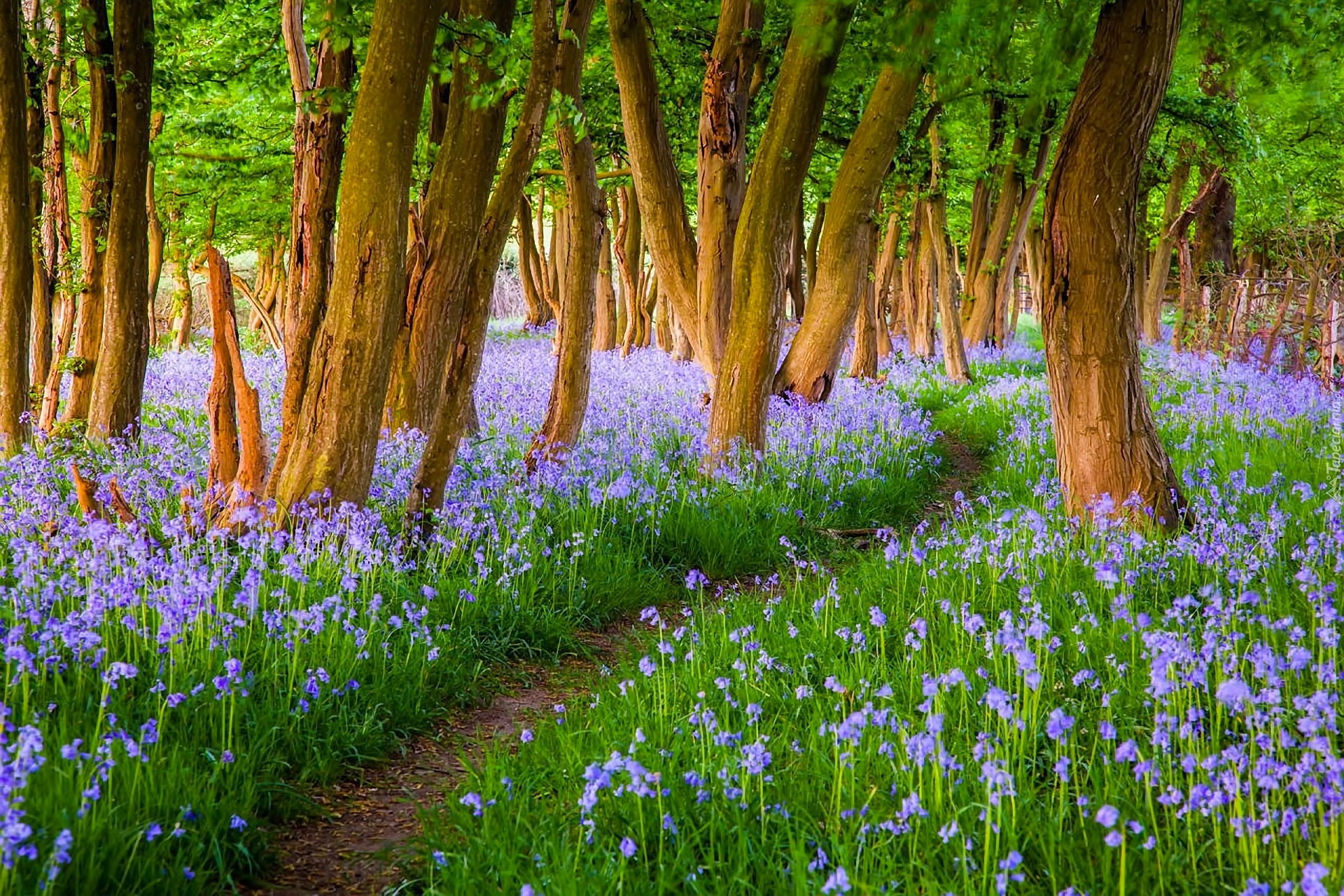 Edytor tapety: Las, Ścieżka, Niebieskie, Kwiatki, Wiosna