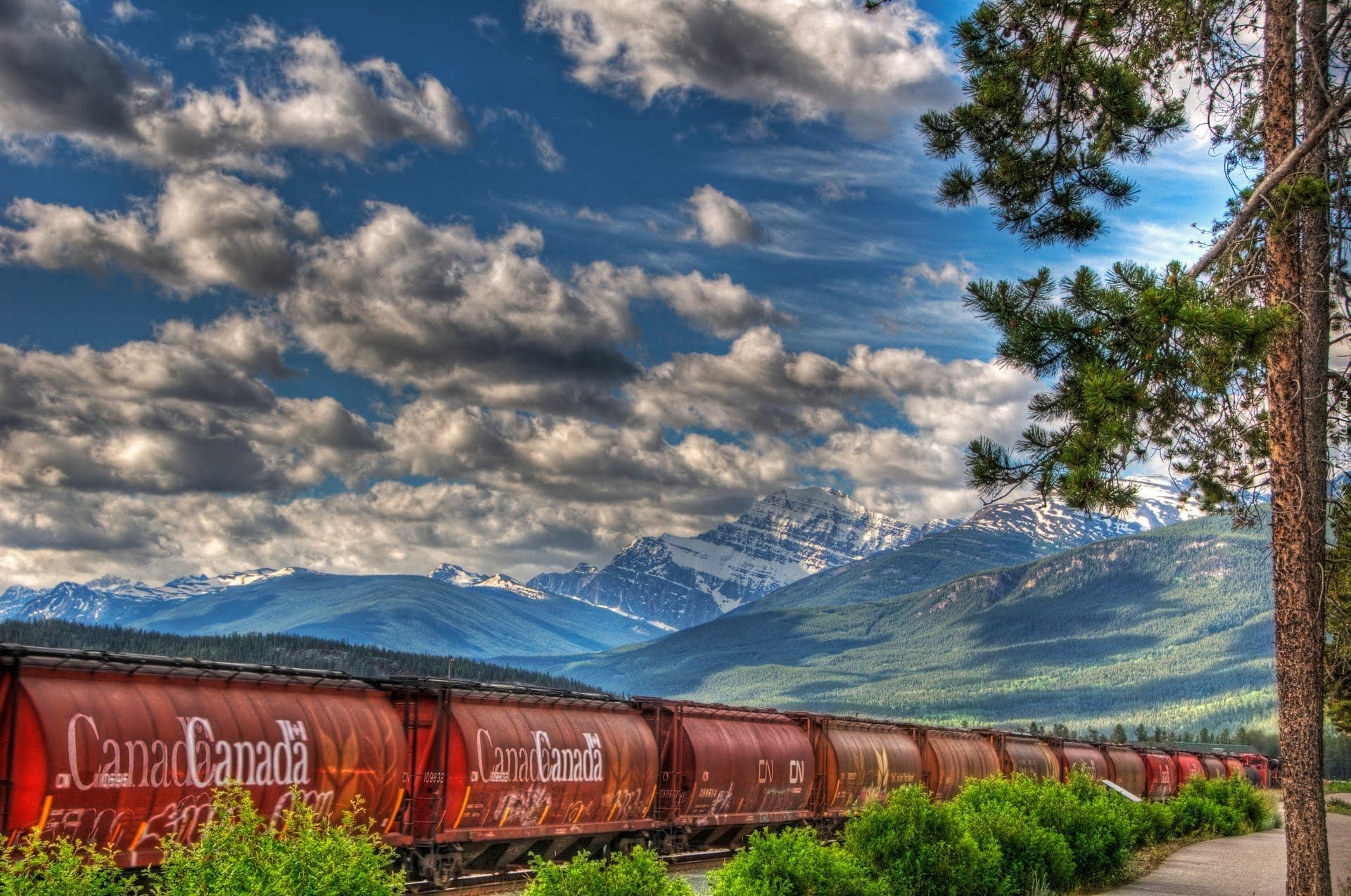 Edytor tapety: Góry, Chmury, Drzewo, Wagony